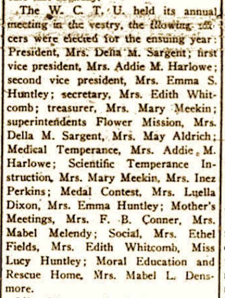 The women met regularly in the church vestry to plan their outreach efforts. Much of their work lay in educating themselves and community members about the dangers of alcohol. This newspaper clipping reveals some of the topics they studied and the activities they undertook such as mother's meetings, a medal contest, and moral education.