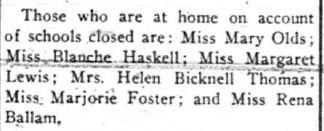 Clip noting school closures, Hanover Gazette Norwich, Oct. 2, 1918