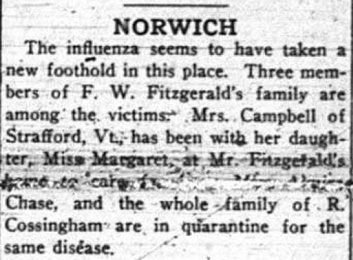 1918 Influenza Pandemic in Norwich VT