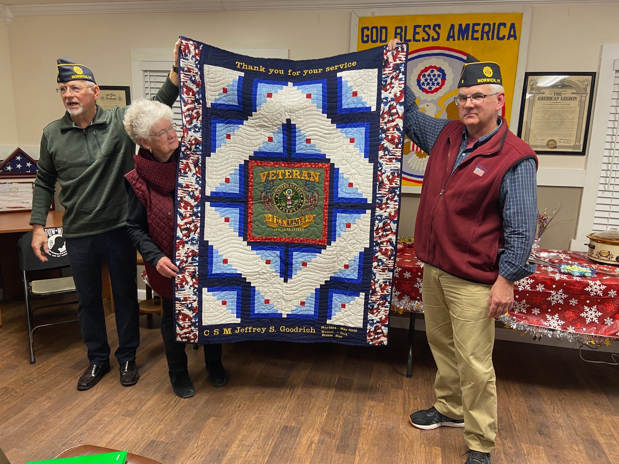 And proud to make this presentation to her son CSM Jeffrey S Goodrich. The quilt was made by Dot Plume.