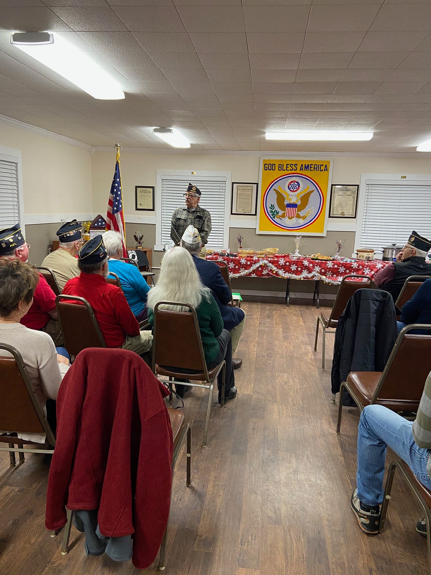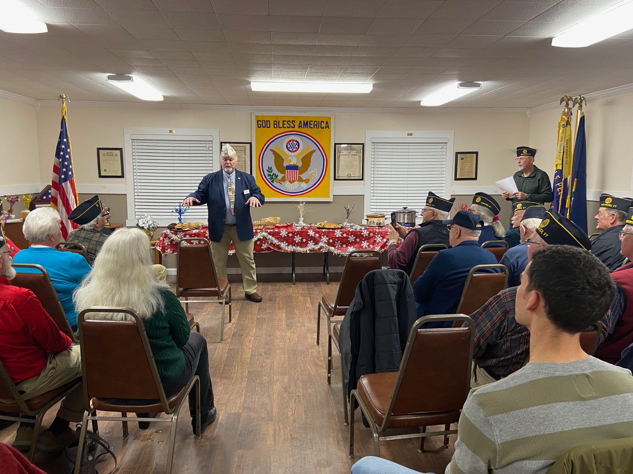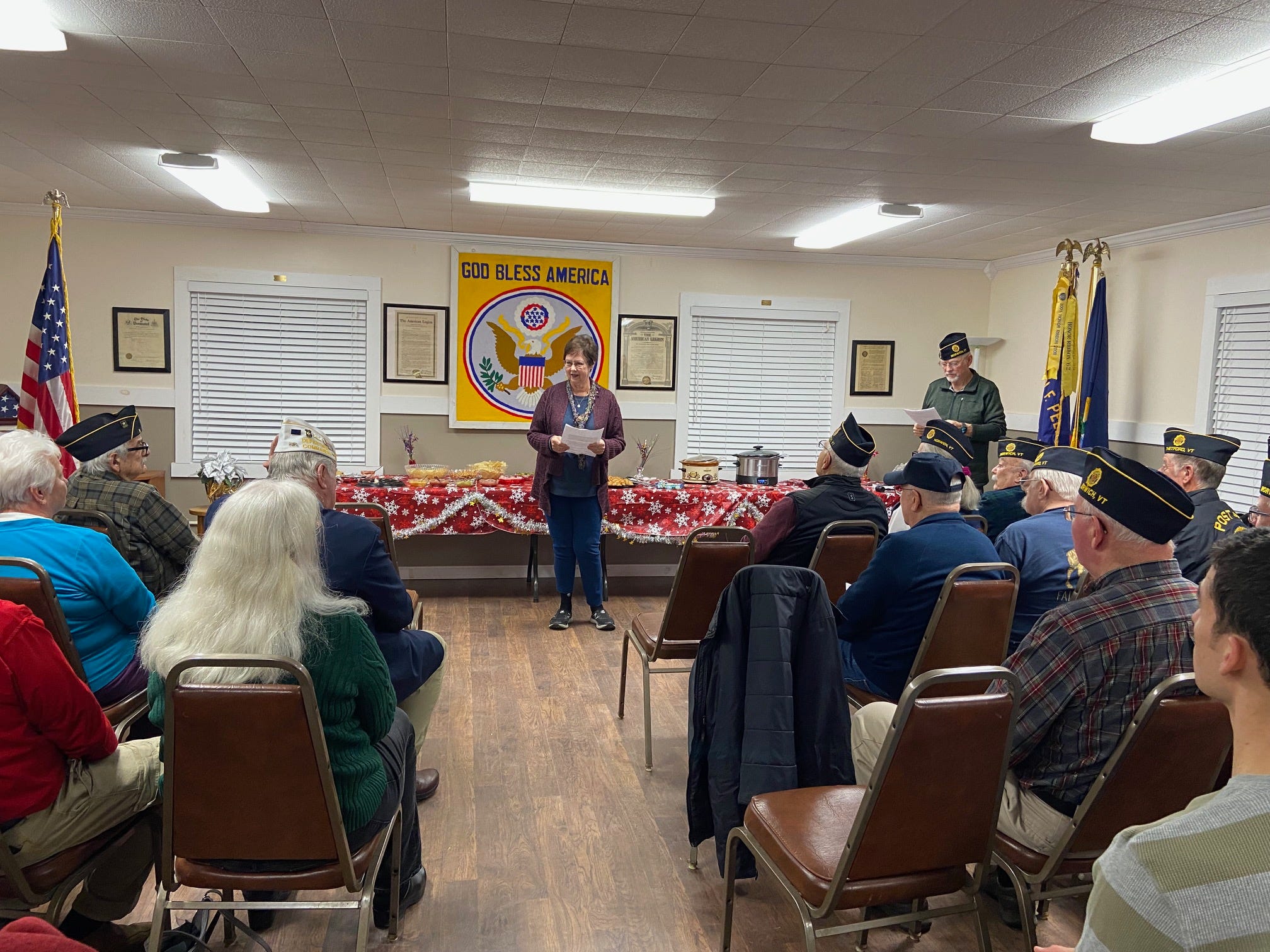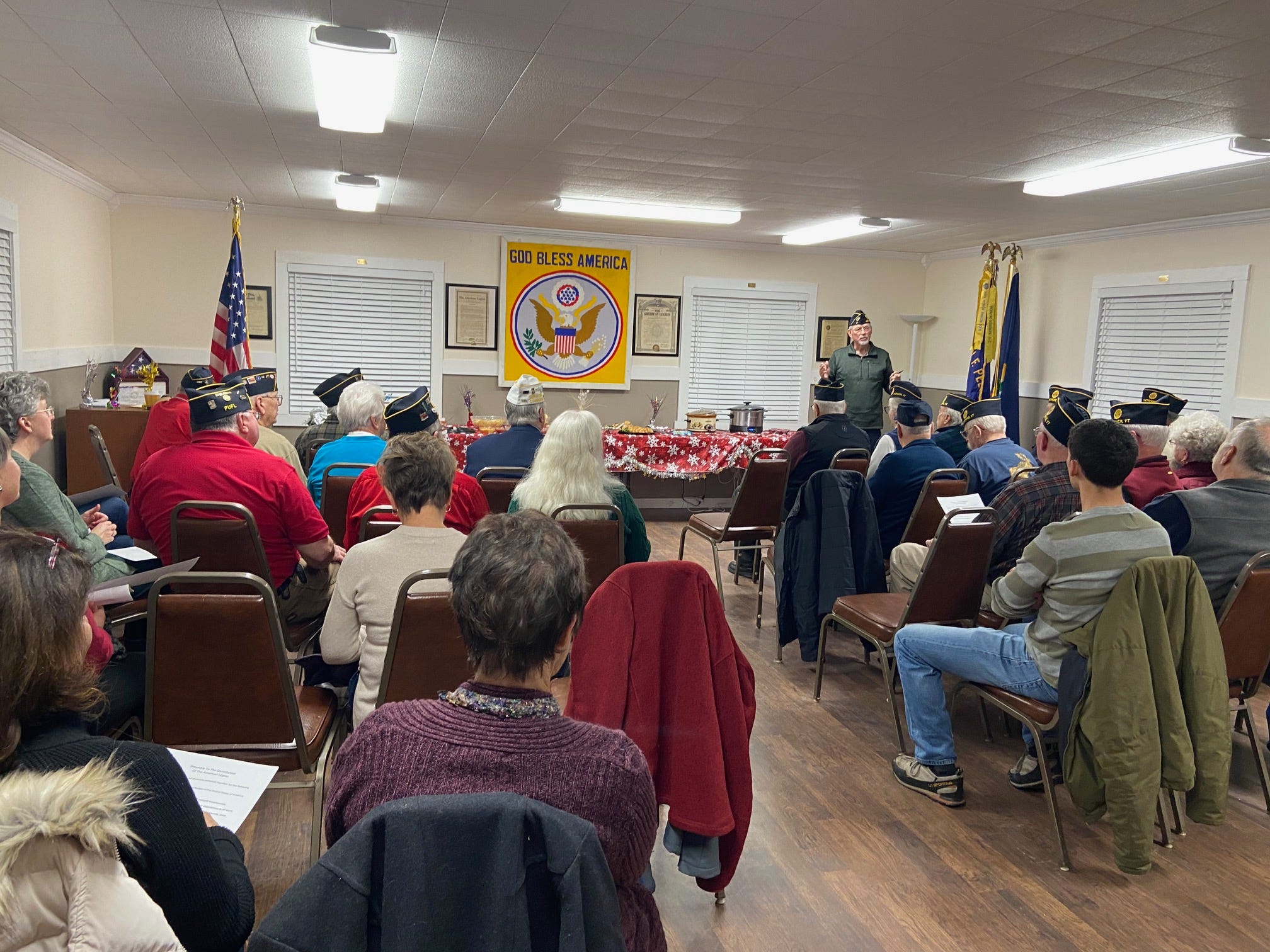 Dennis Brown, Commander of the Jeffrey S Holmes Post # 84 in White River Junction, Vermont introduces members of the post. https://www.legion.org/stories/why-i-love-my-post/jeffery-s-holmes-post-no-84-white-river-junction-vt