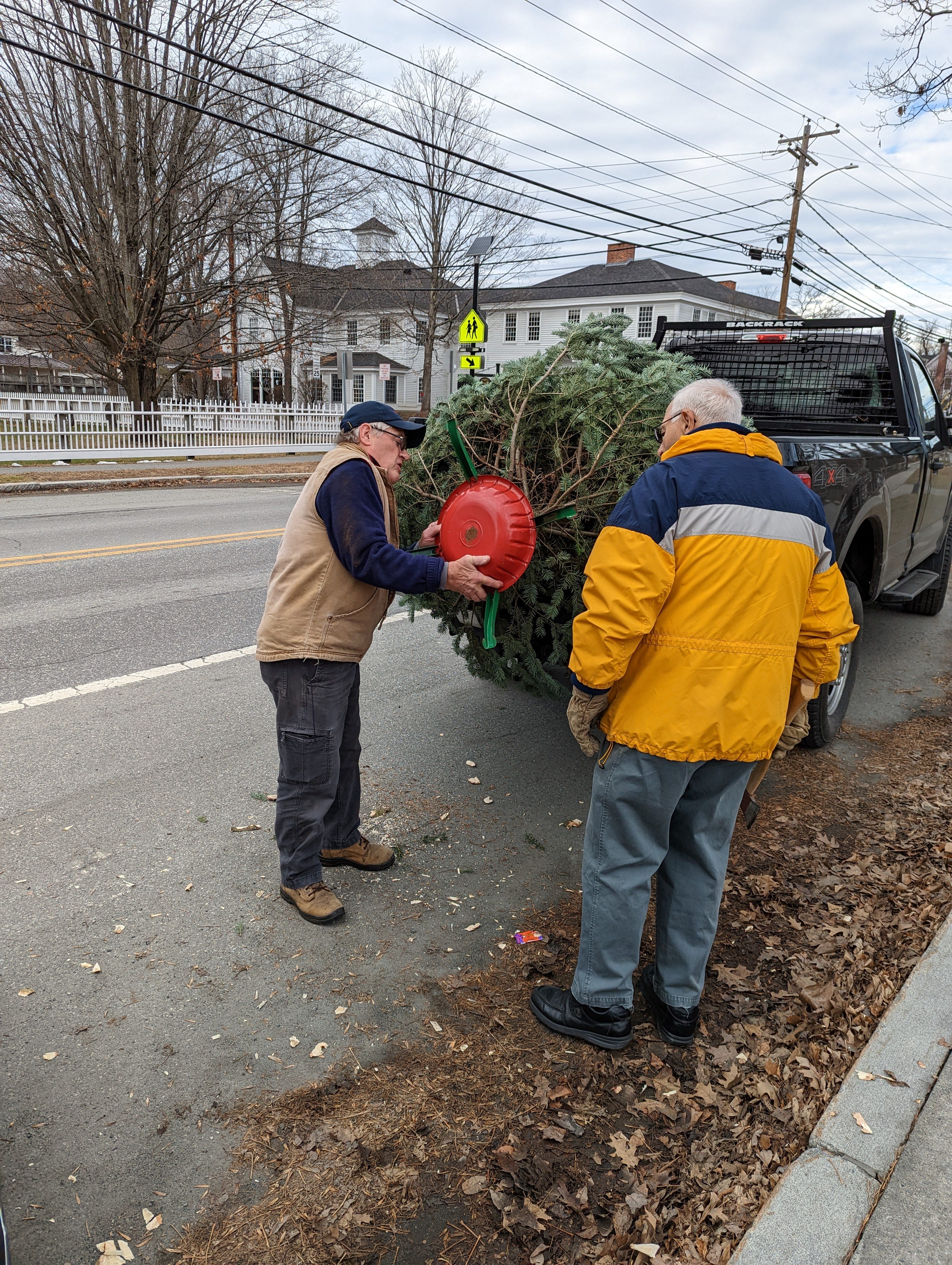 Continuing the tradition were Norwich Lions: George Porter, Bill Osgood, Ed Seaton, Bill Merrill, Earl Thompson, Bill Molloy, and Ed Janeway. More recently, Norwich Lions Rusty Bernal, Robert and Laurie Sabatelle, Demo Sofronas, Jay van Arman, and John Lawe were active participants in providing the tree. The Norwich Historical Society has chronicled the efforts of many of these.