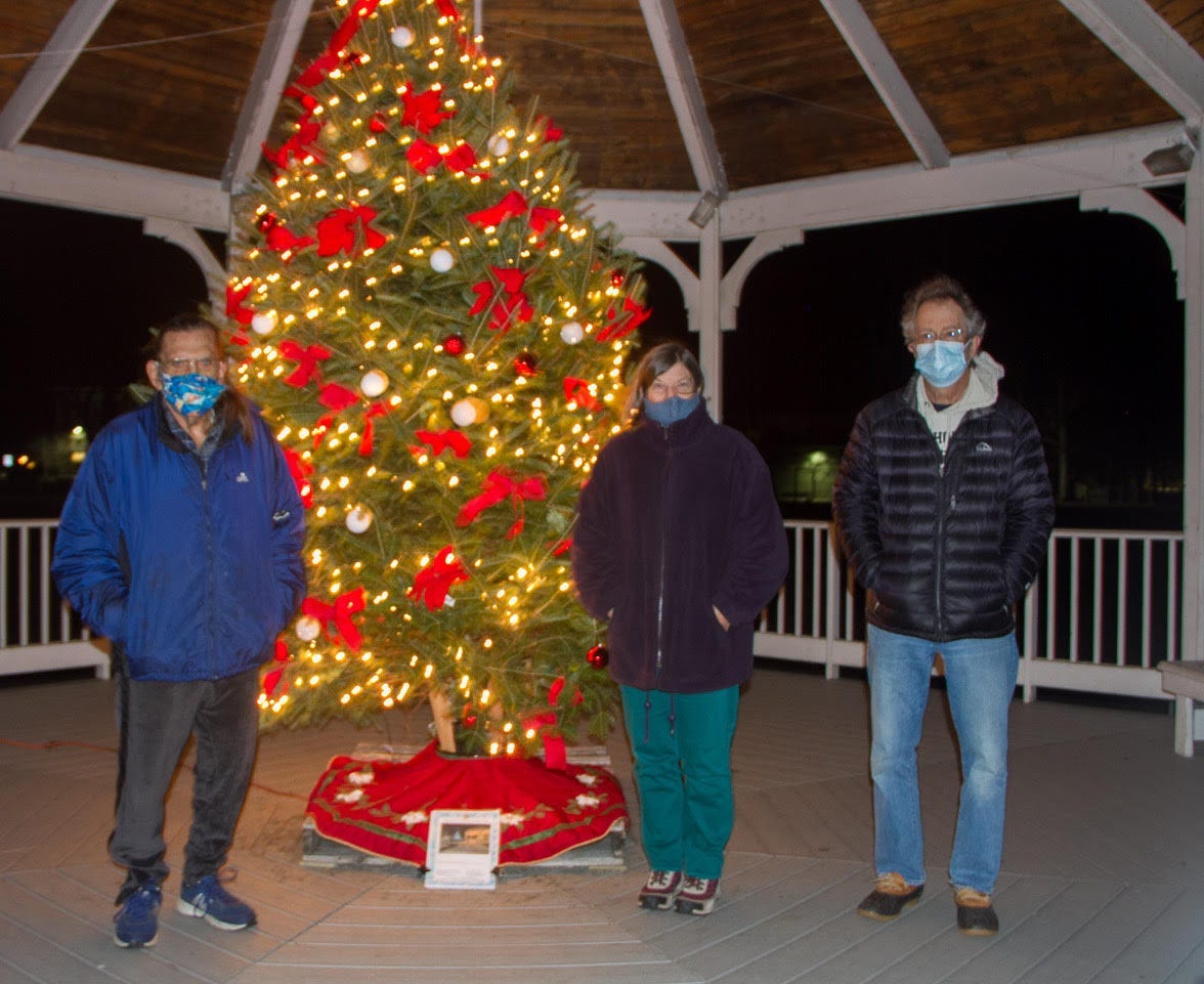 Phil Wheeler, Cheryl Brush, and Rick Tucker at the official lighting of the 2020 memory tree ceremony.