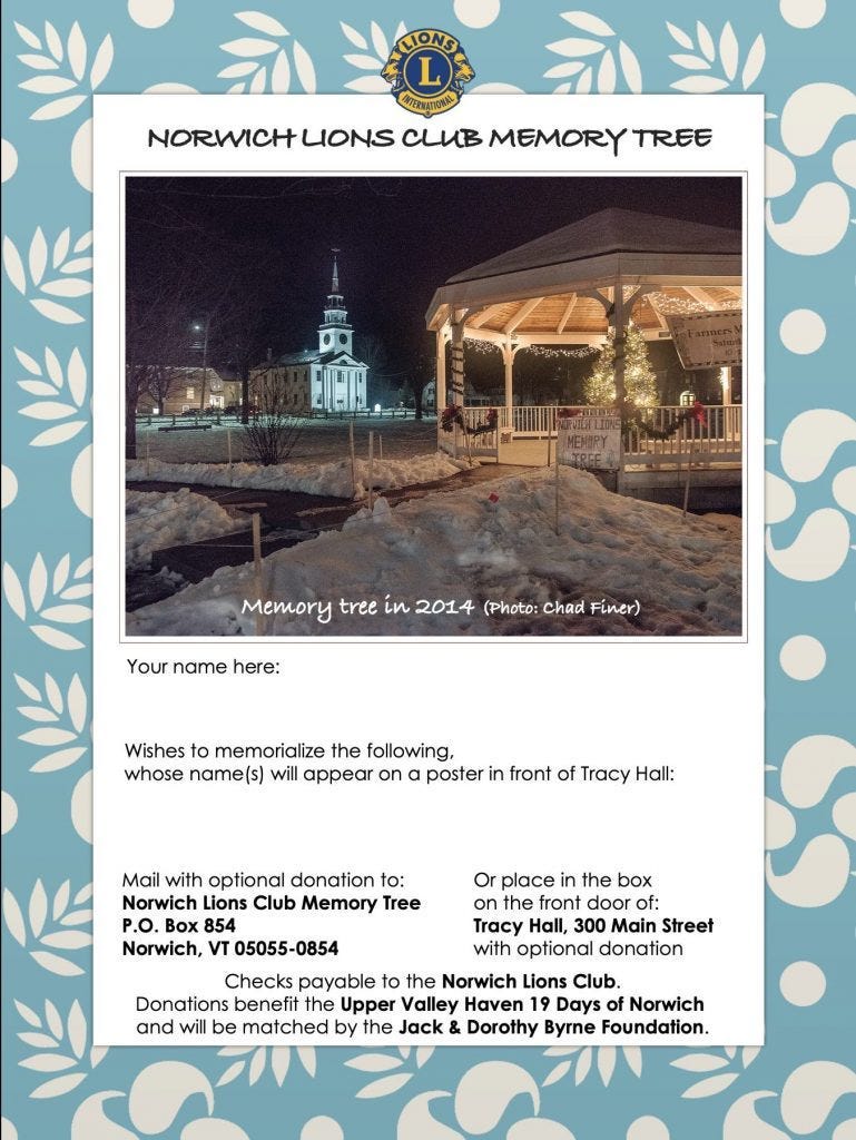 A History of the Norwich Lions Club Memory Tree and how it benefits the 19 days of the Valley