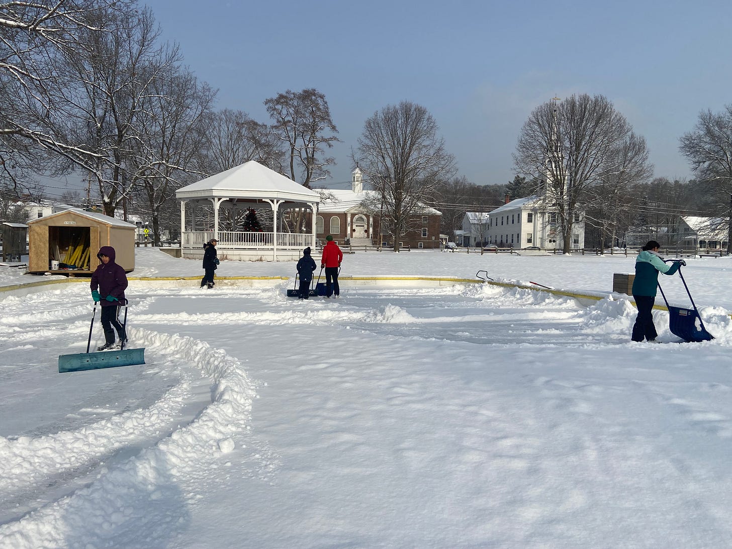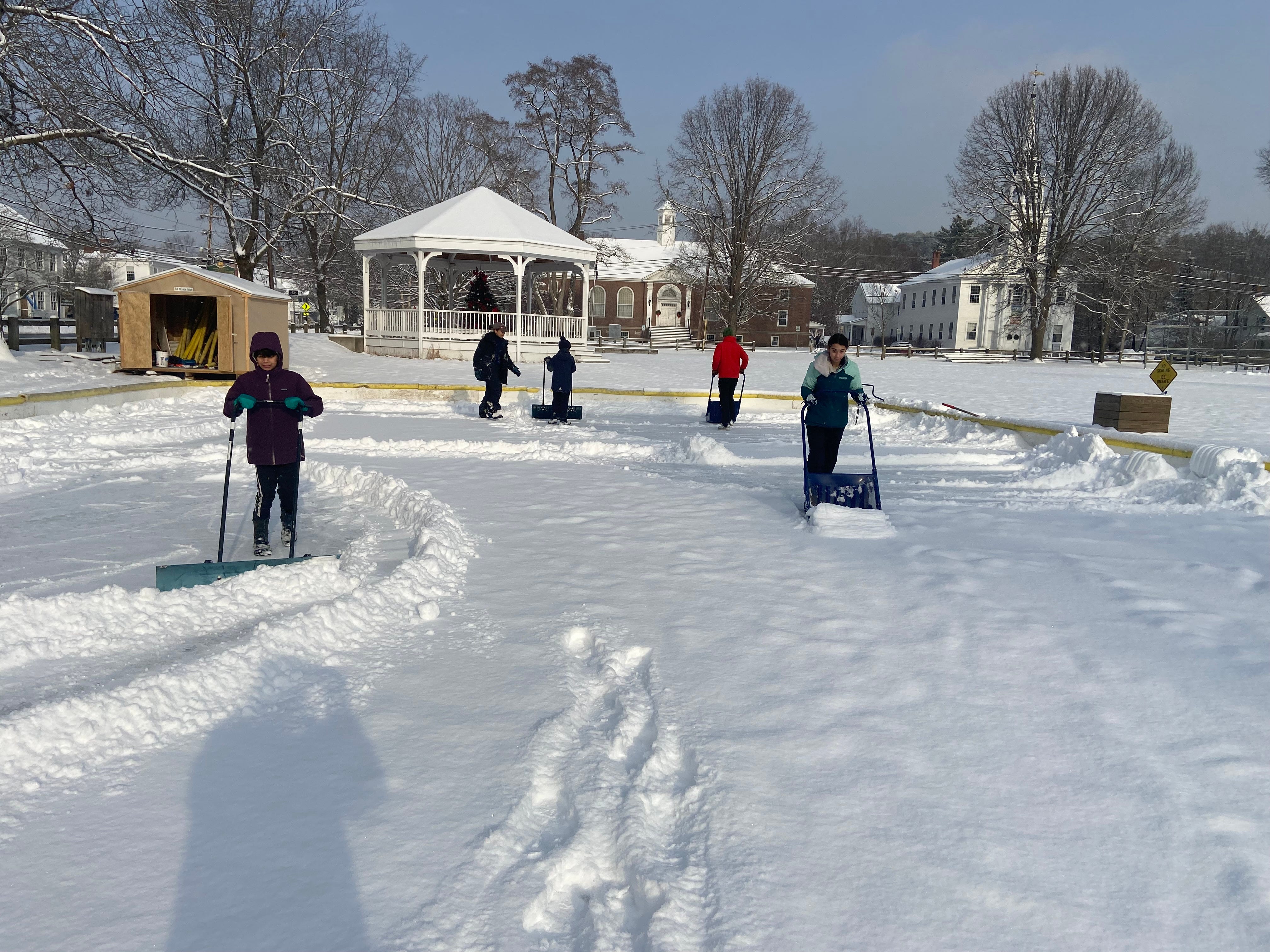 Here are your Norwich Recreation updates and don’t forget to save the date for a skate on Friday, January 24 from 3:30 - 4:30 at the Norwich skate rink on the green and just behind the Gazebo . Here you can see the prep as this team of volunteers help clear away the snow and get things ready.