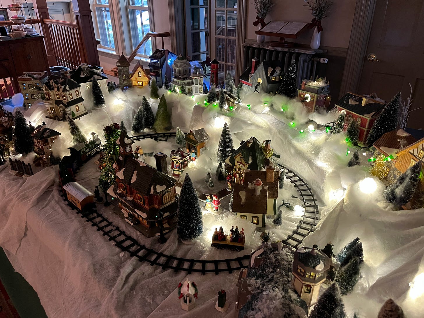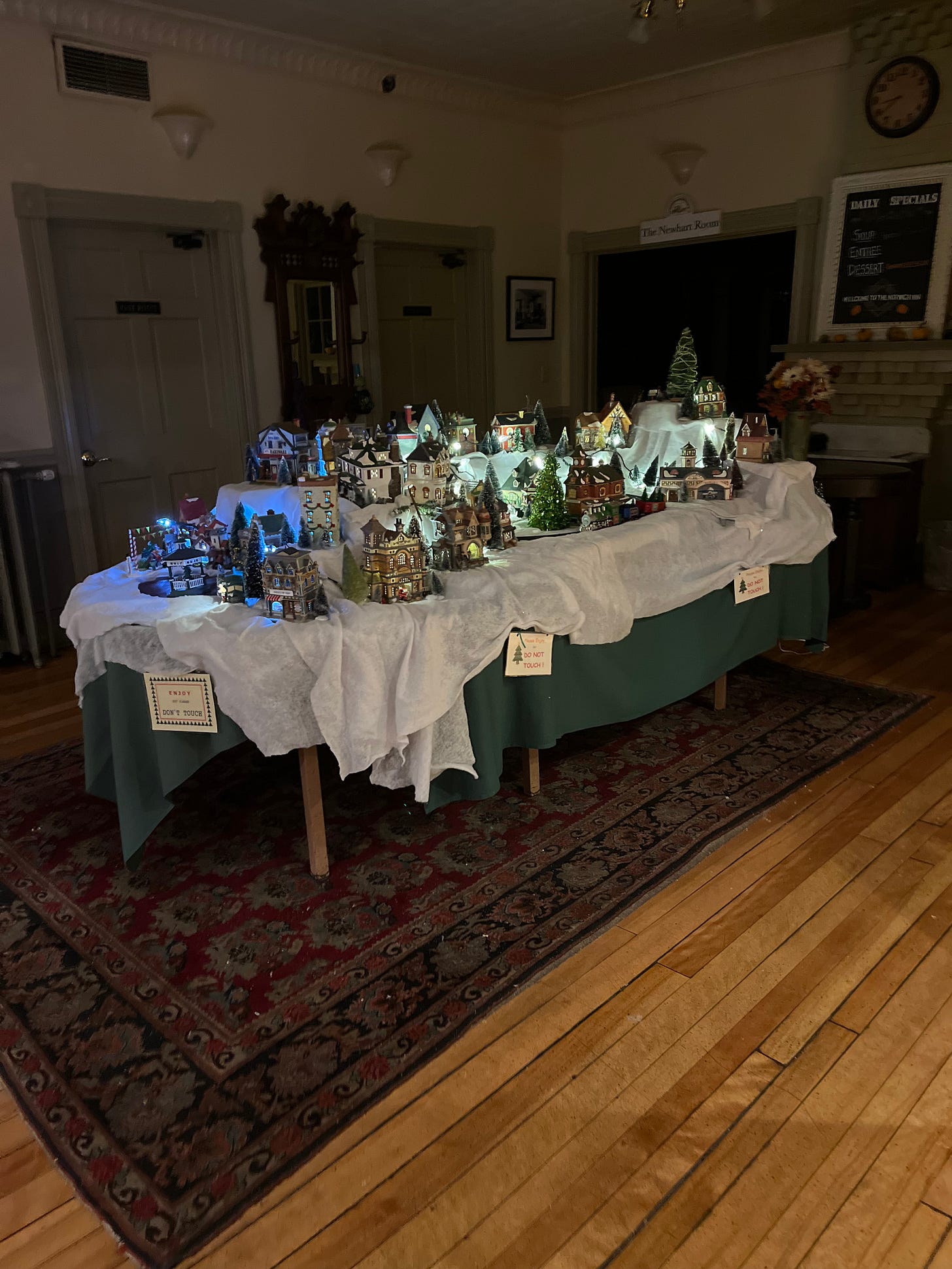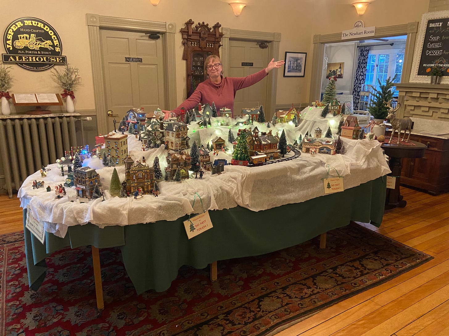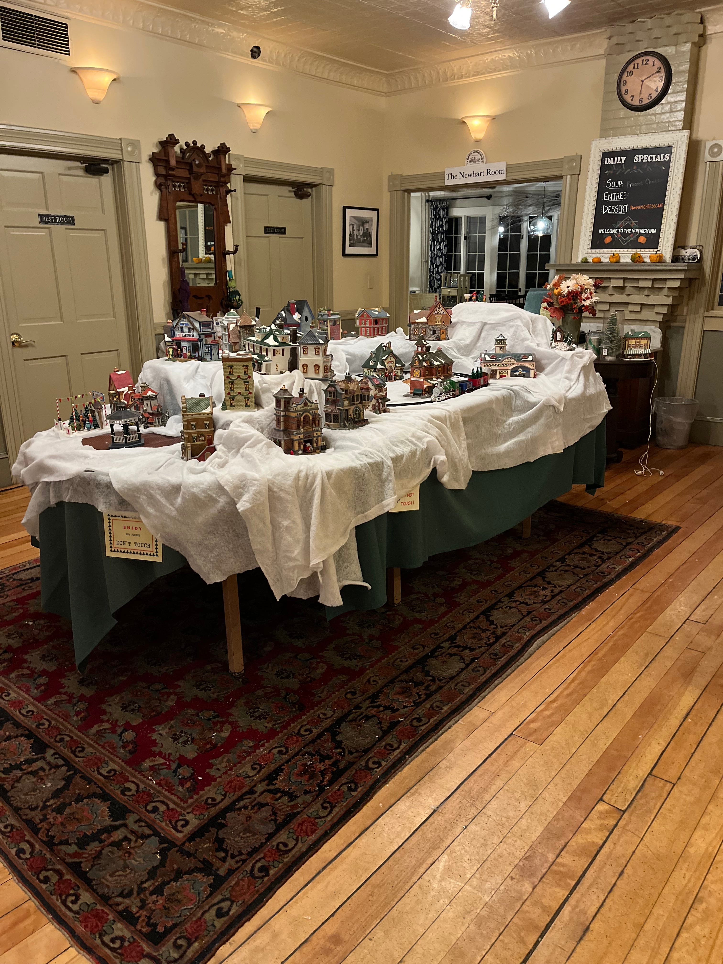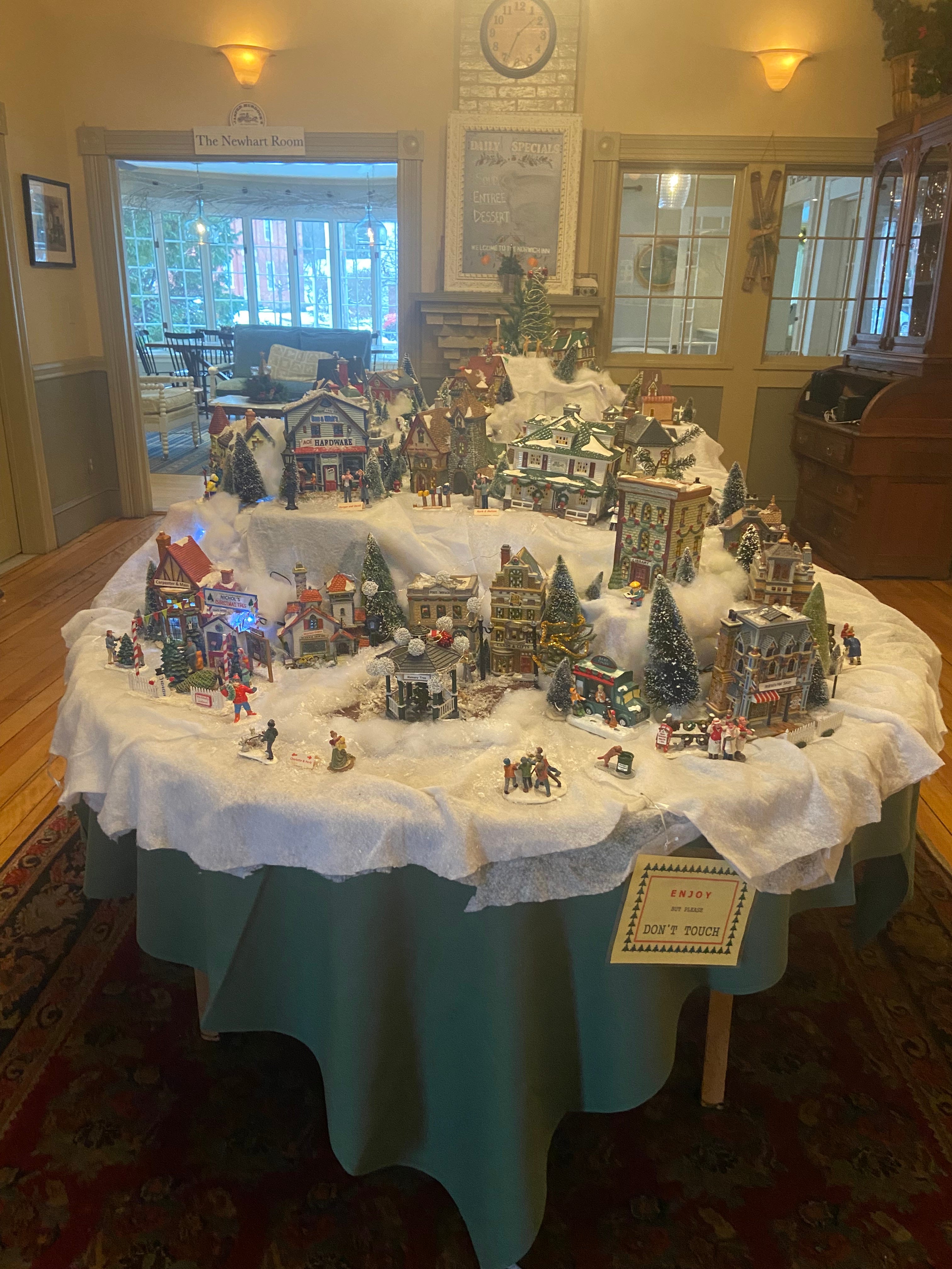 This adorable seasonal village is on display at The Norwich Inn courtesy of Gretchen Dwyer and family.