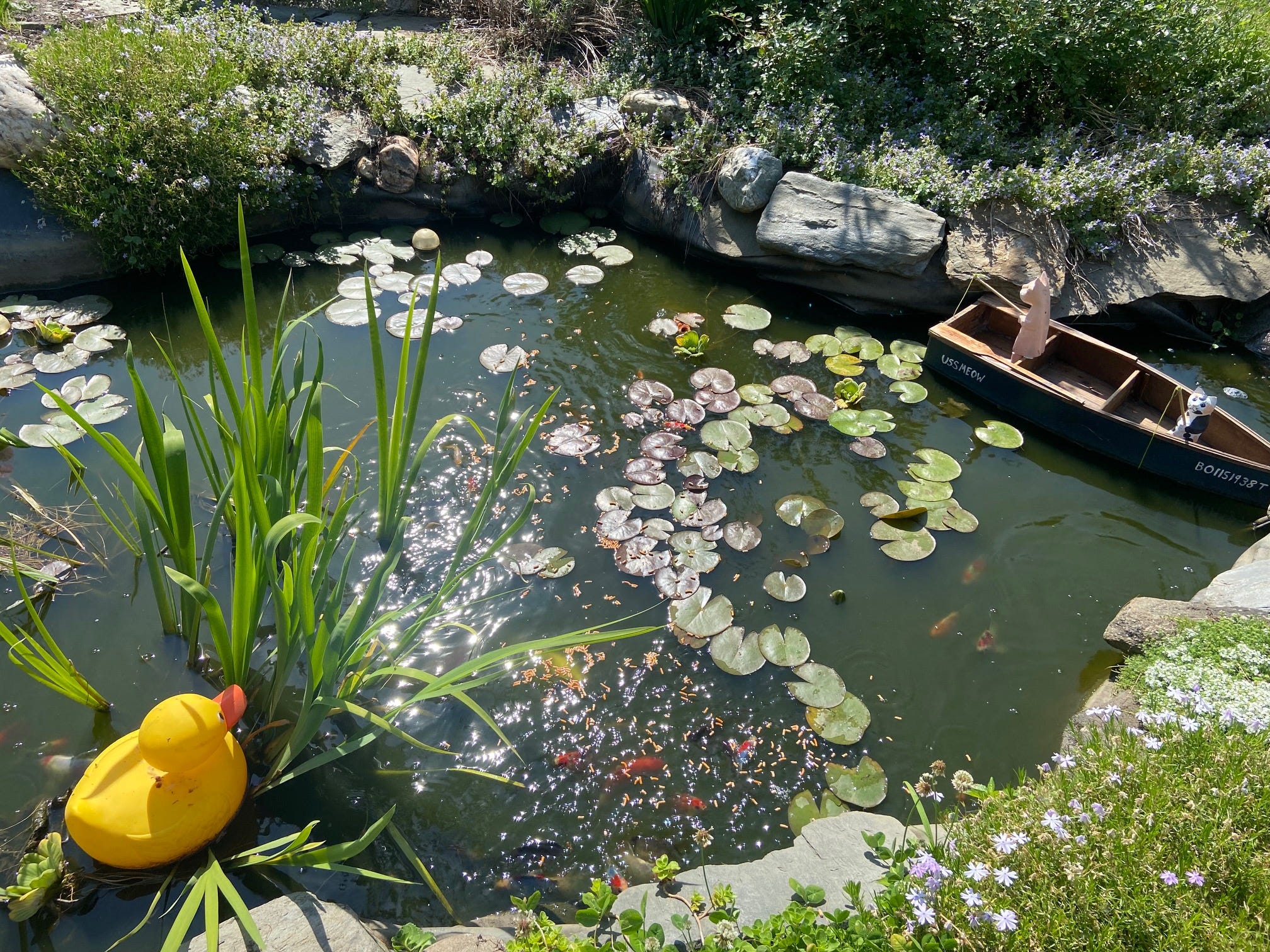 Rubber Ducky watches as a few hungry fish receive there vitamins