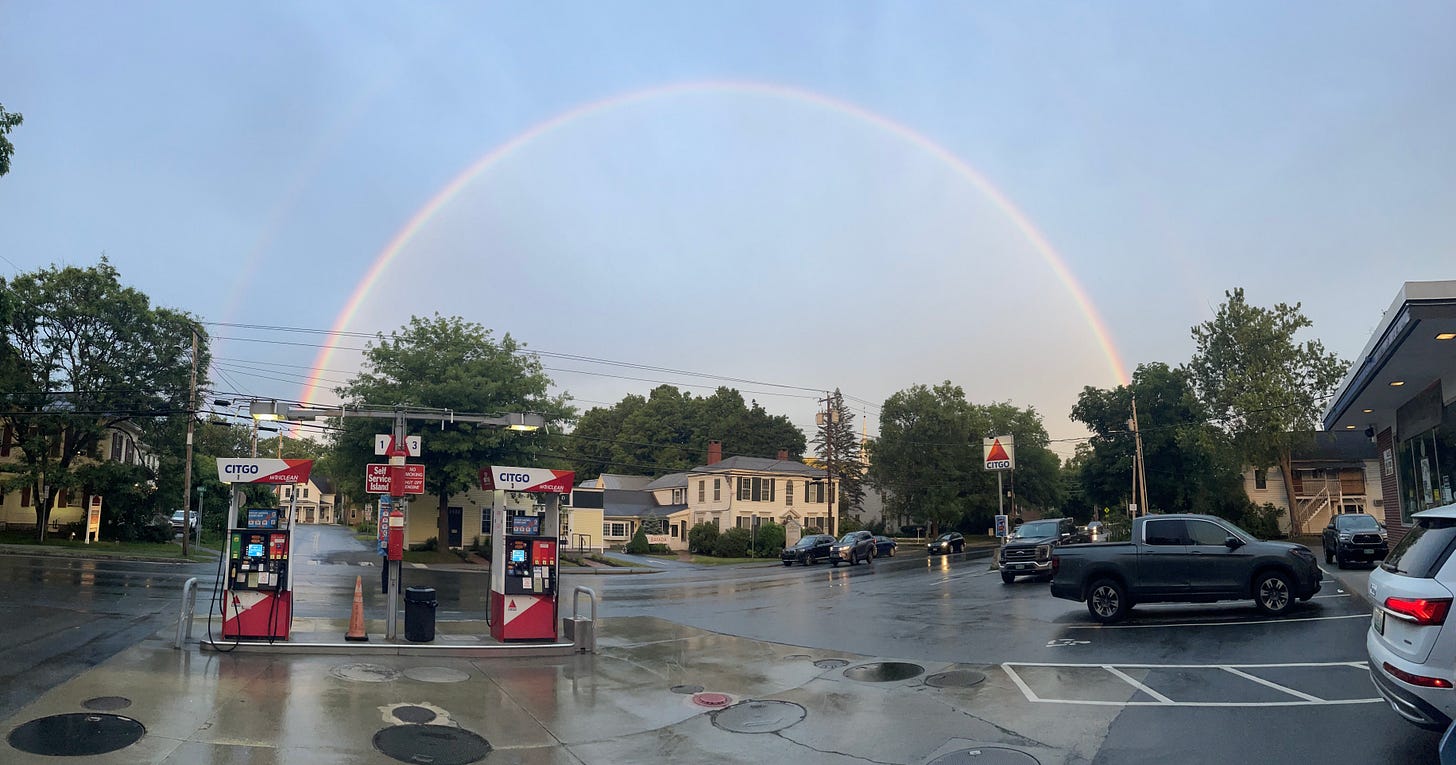 A nice rainbow towering over Main Street recently (photo courtesy of Rebecca Munsterer). The rest were taken by me on several occasions this past week.