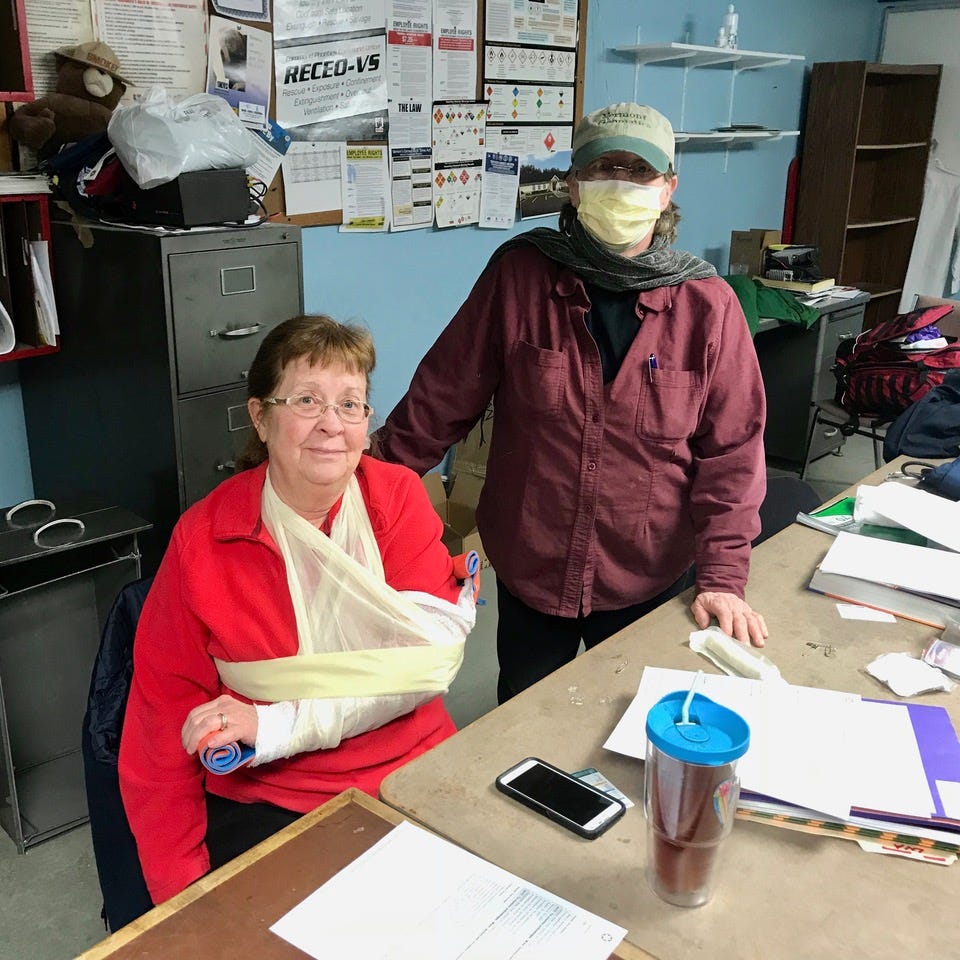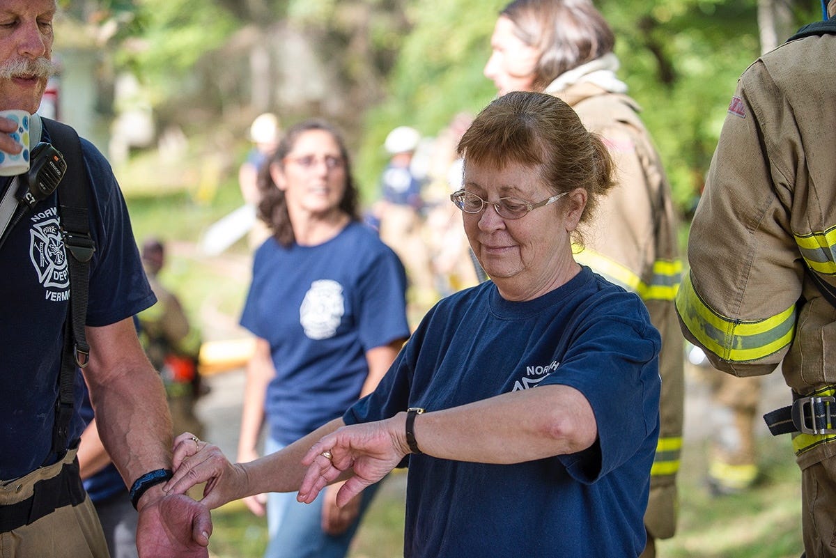 Bonnie Munday and Linda Cook at a fire department training session (Photo courtesy of Matt Swett)