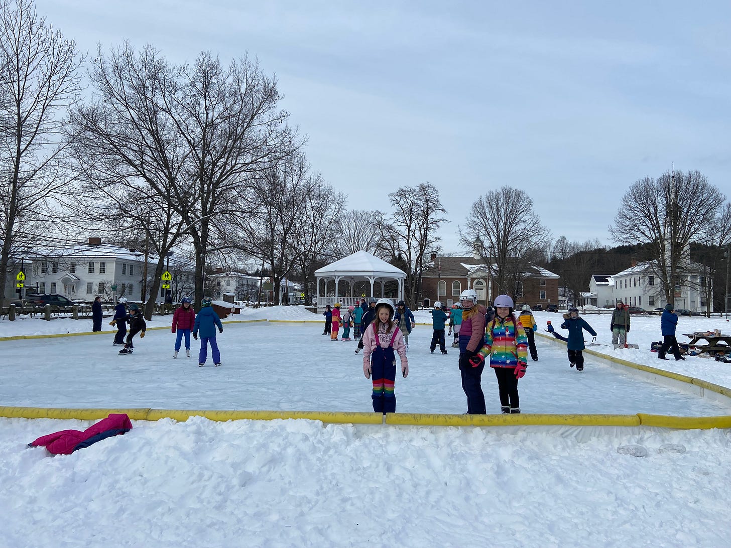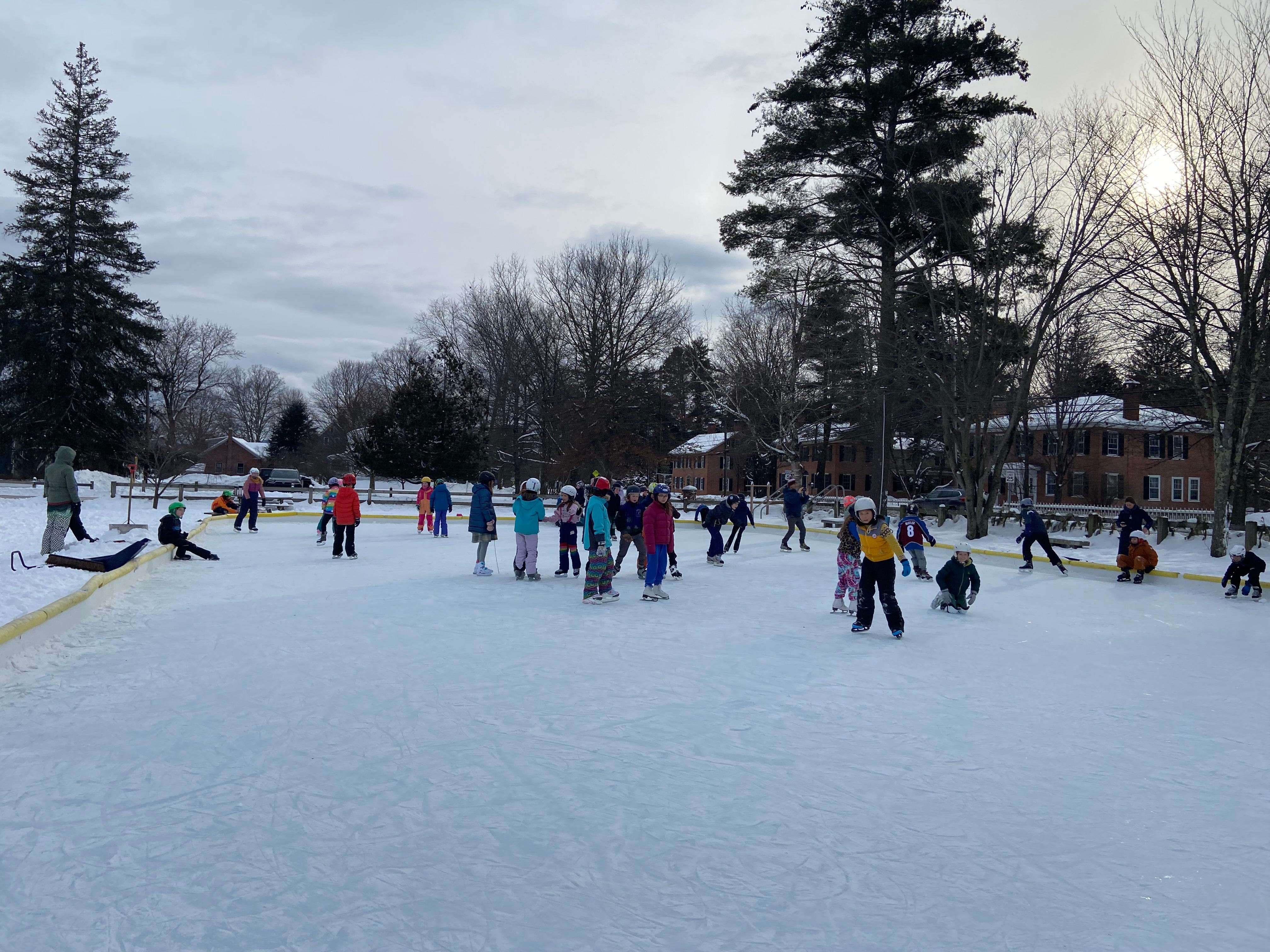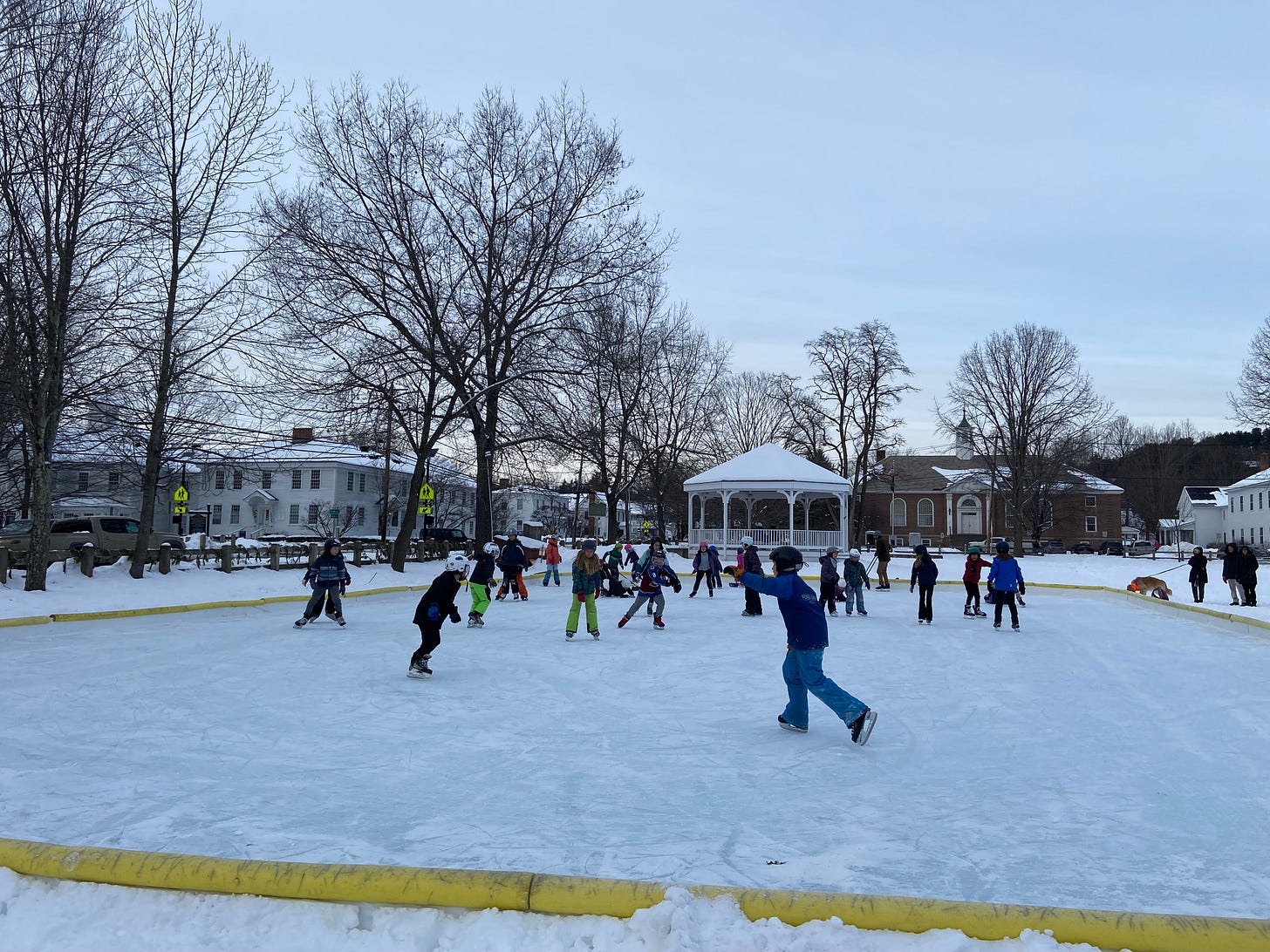 1 - The ice rink is OPEN, thanks to Buck & the 2024 Hosers.  This year's rink is truly magical after the sun sets. We added under-rink lighting in 'Norwich Blue' so that the perimeter glows.  If you need skates, please stop by the bins behind Tracy Hall to see if we have your size. You are welcome to borrow skates for a season and return them in the spring.