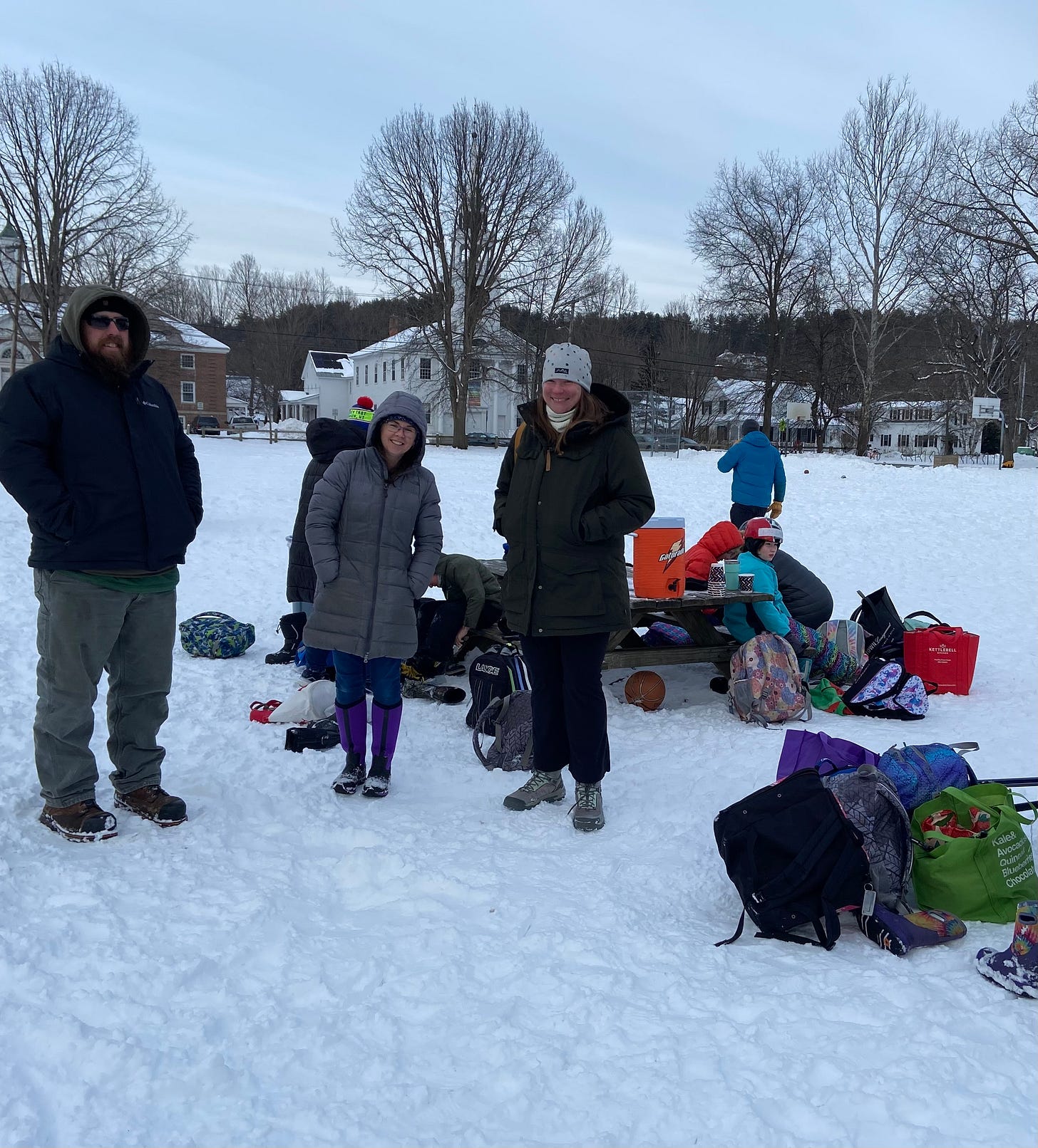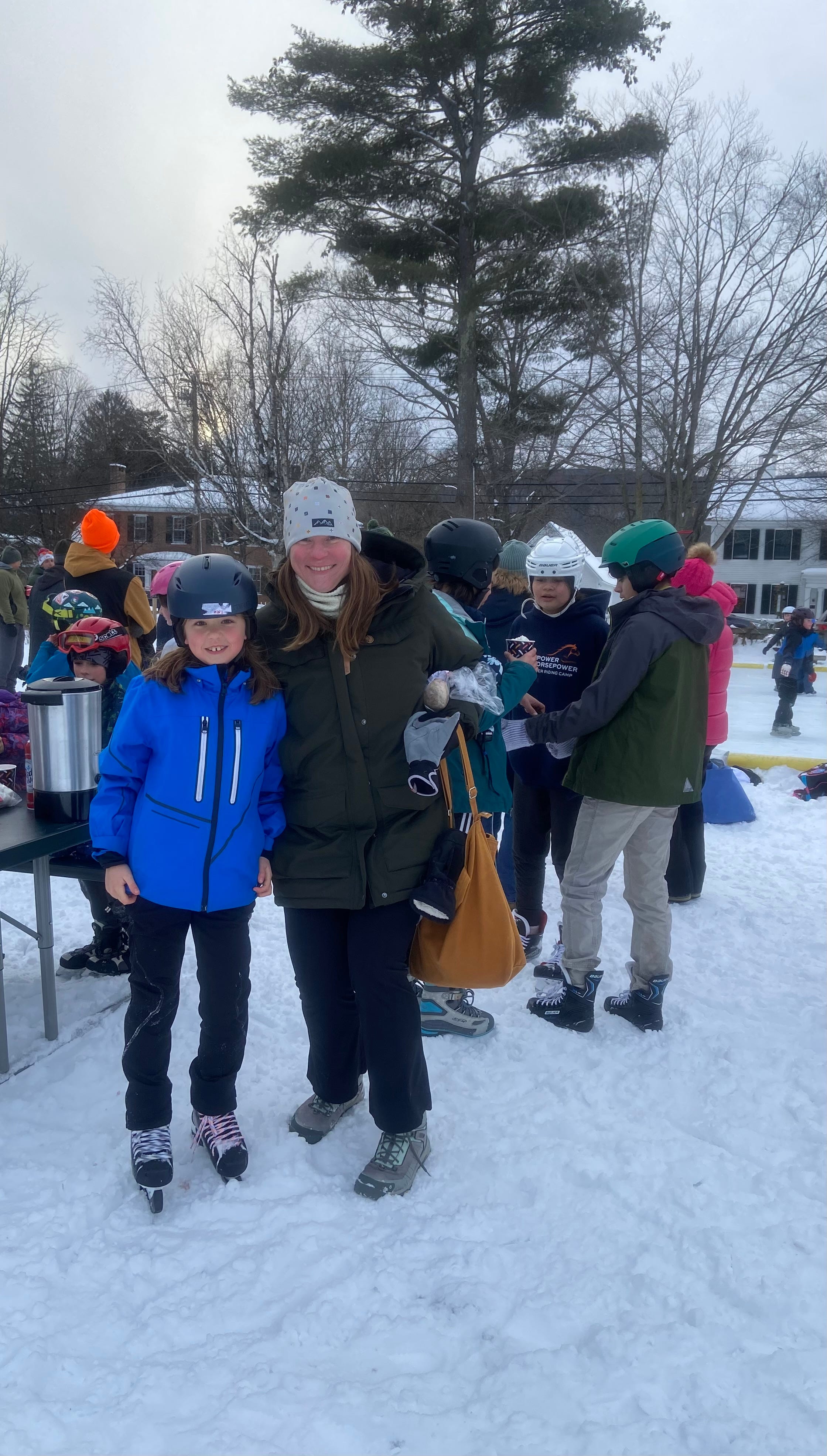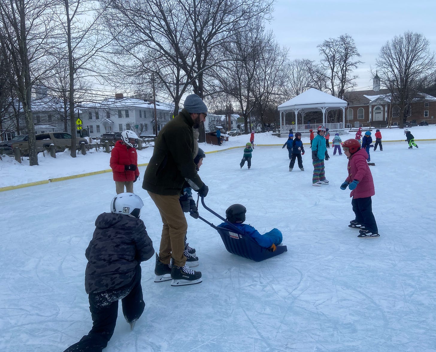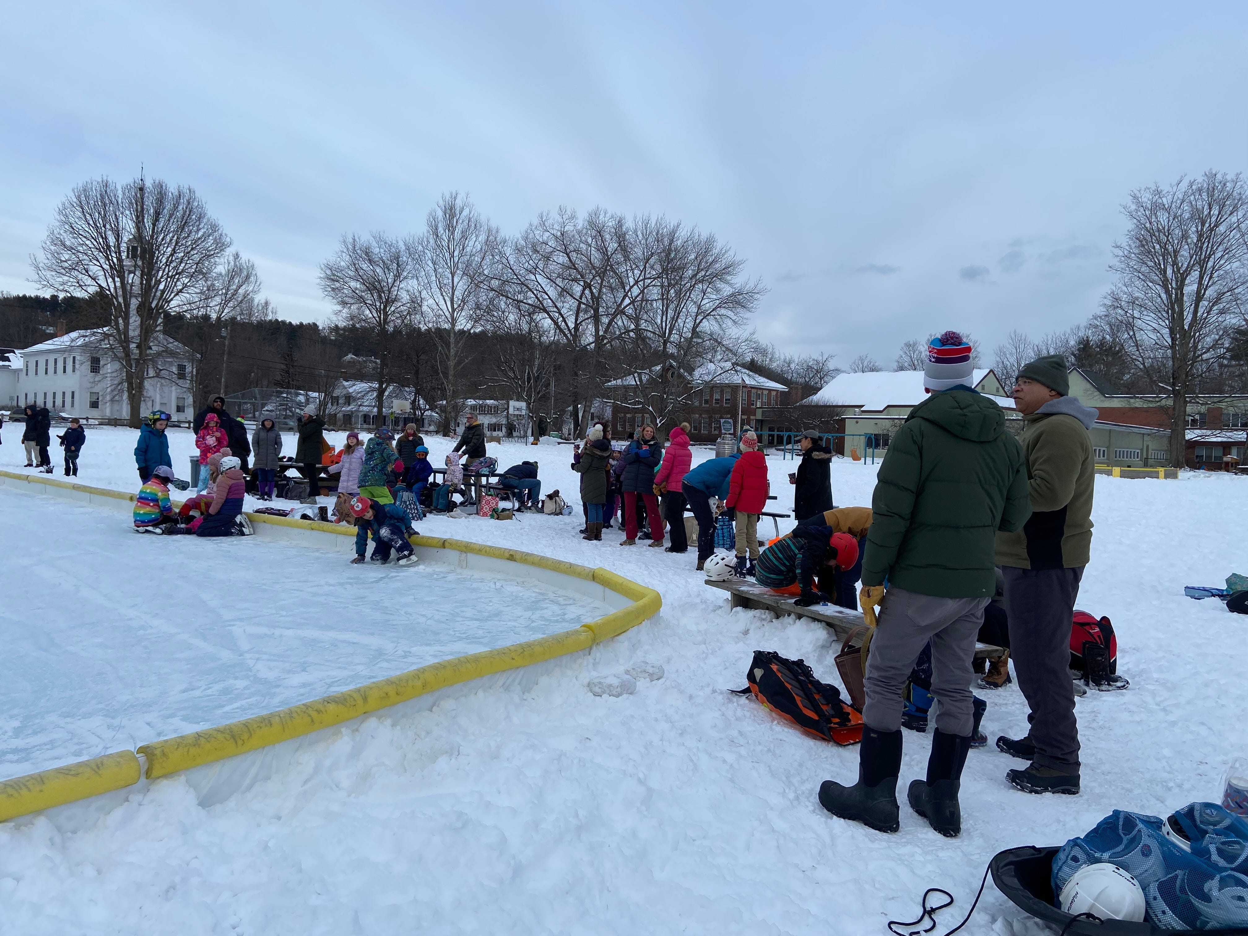 1 - The ice rink is OPEN, thanks to Buck & the 2024 Hosers.  This year's rink is truly magical after the sun sets. We added under-rink lighting in 'Norwich Blue' so that the perimeter glows.  If you need skates, please stop by the bins behind Tracy Hall to see if we have your size. You are welcome to borrow skates for a season and return them in the spring.