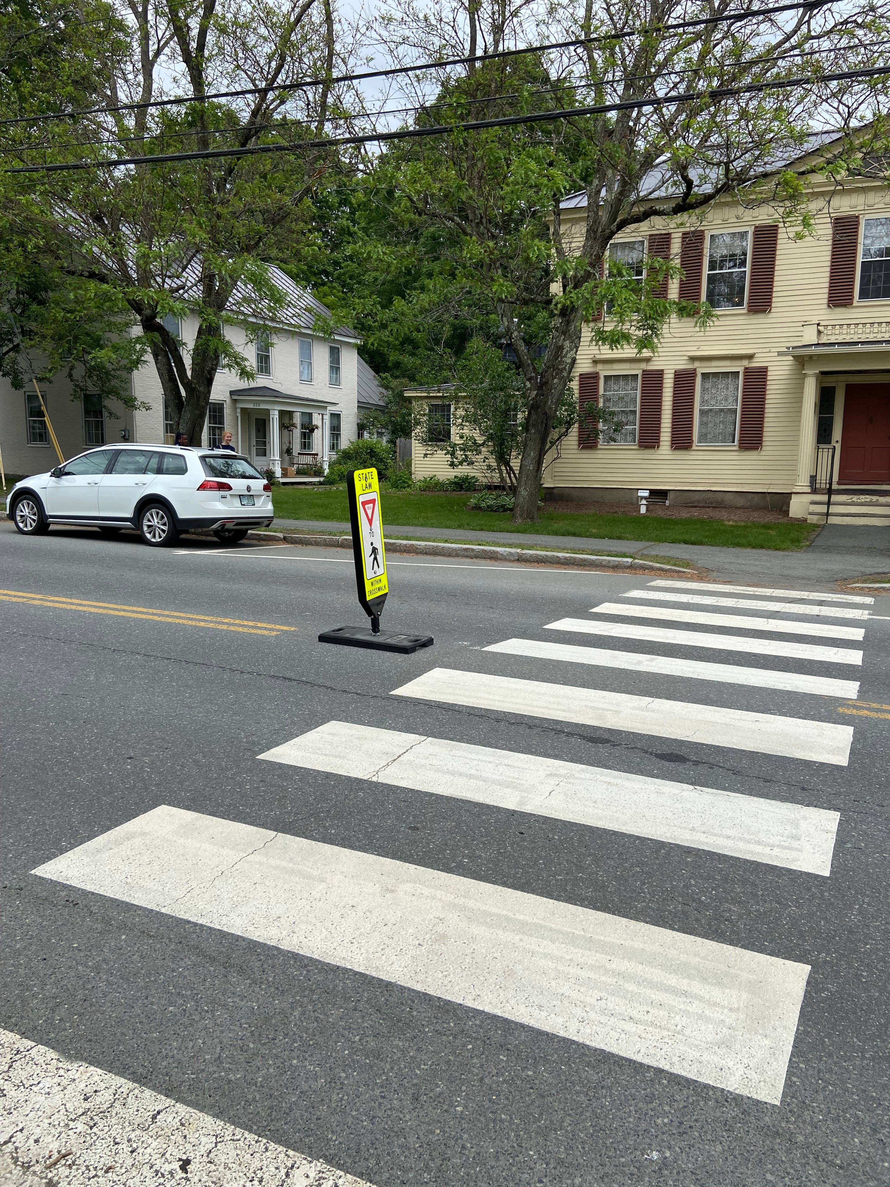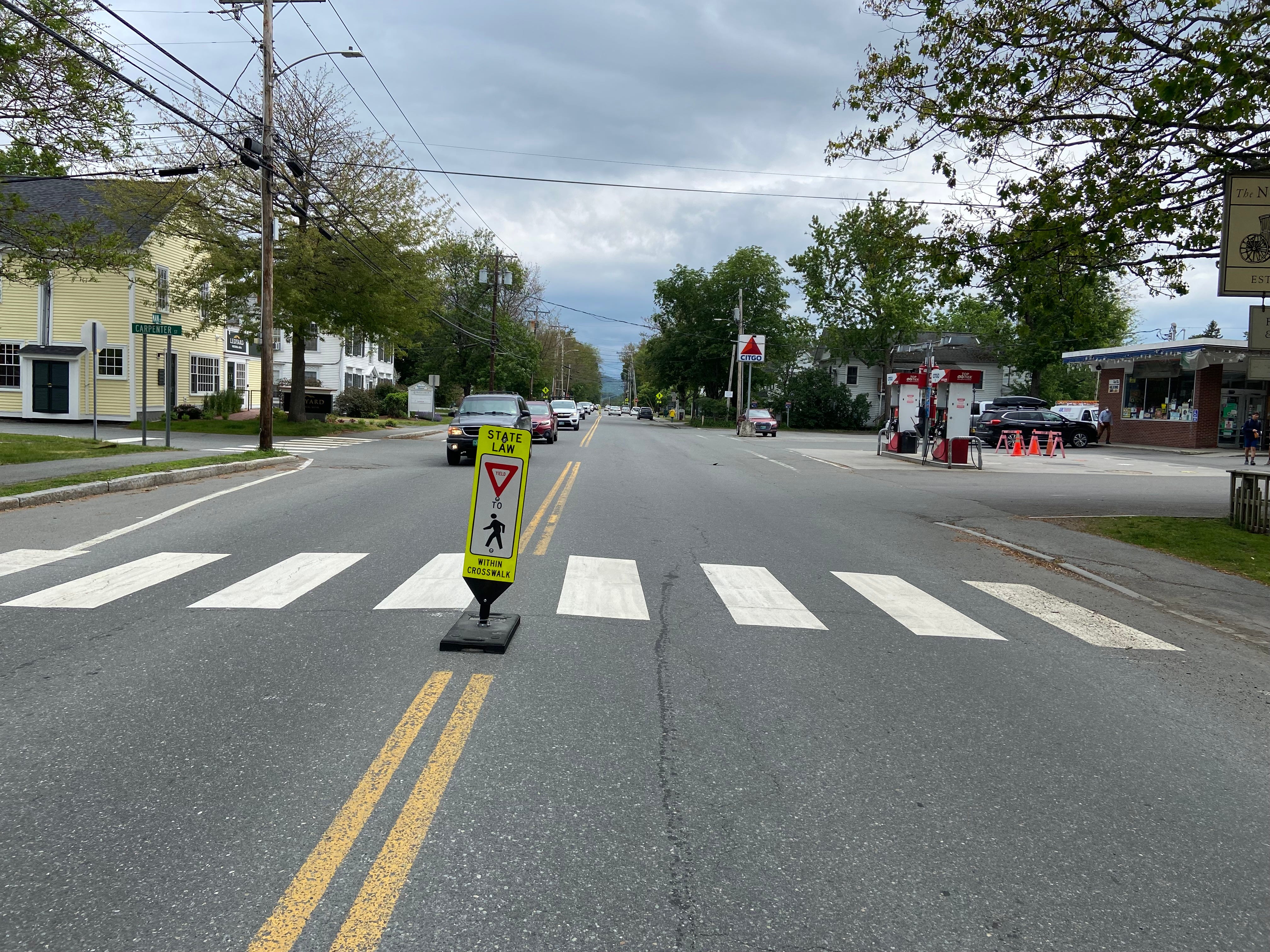 With the Crosswalk signs to remind motorists of the state law at crosswalks