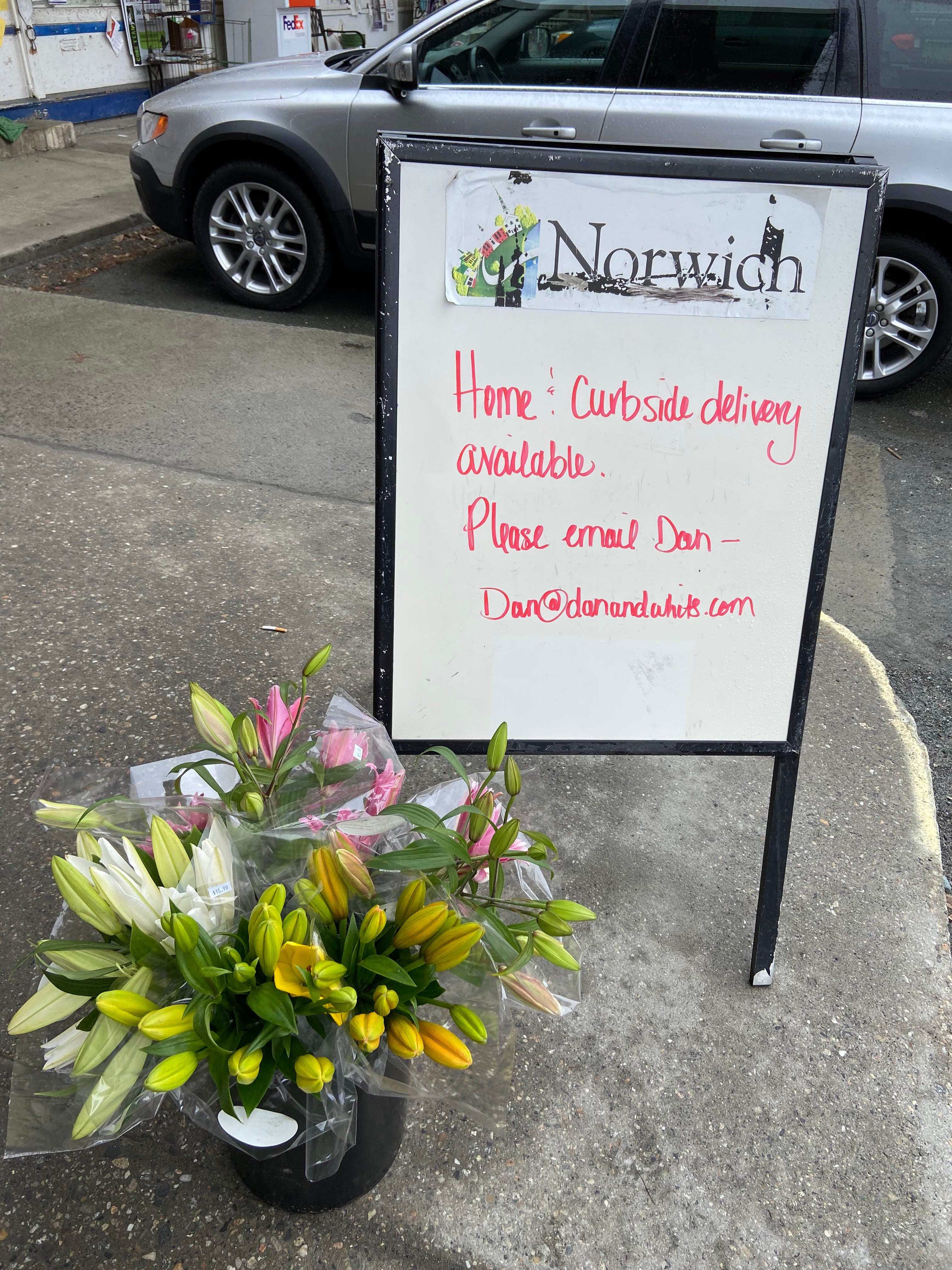 The other day as I was walking in to Dan and Whit’s, I noticed the colorful flowers placed next to the D&W signs. I went into the store and came out and thought the flowers caught my eye but what was on the signs? I took another look on both sides and snapped a few photo’s so that I could share the messages with you.