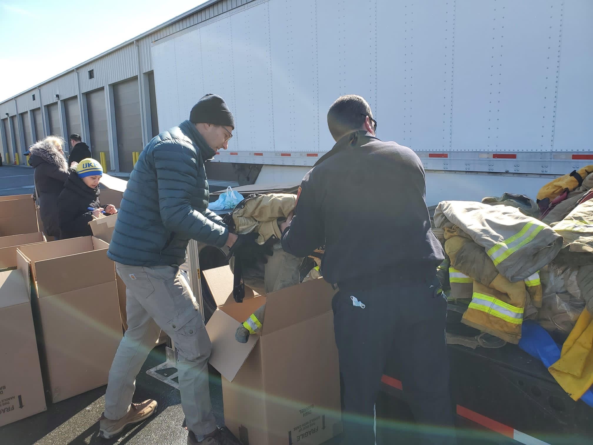 Norwich Fire Department was able to come up with 10 full sets of our older PPE in good condition, which I drove down to Clifton, NJ, and helped load onto an air freight shipment headed to Poland. As of last week, I have confirmed that the gear made it to Ukraine.