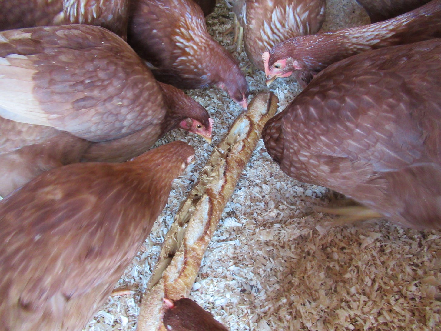 Here are some pictures of my girls from baby chicks to teenagers (19 weeks old). Doesn't everyone feed their girls a baguette with peanut butter in the winter? They should be laying any day now. Let me know if you get these and you like them.. Eggs will be available at Crossroads when they open.