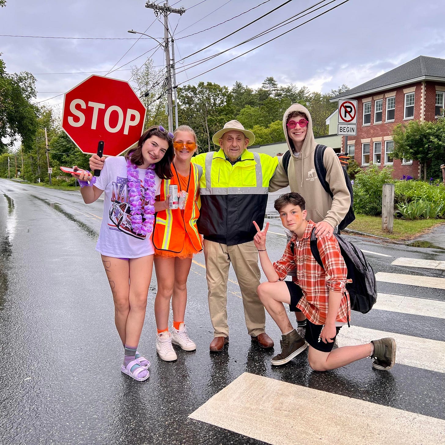 And a group photo with the crossing guard on their way home (photo taken by Emma Cottage).