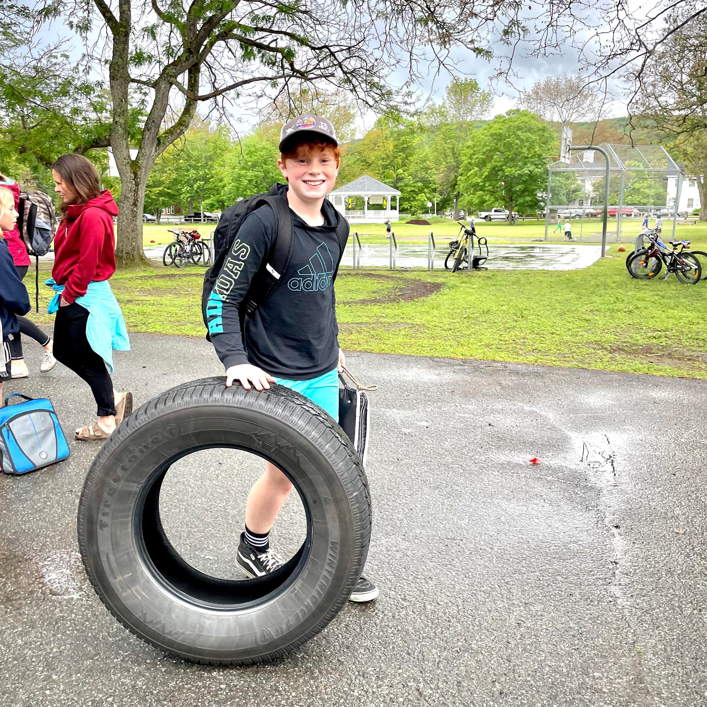 Lucas rolling along to school with his book bag in tow (photo taken by Molly Riordan).