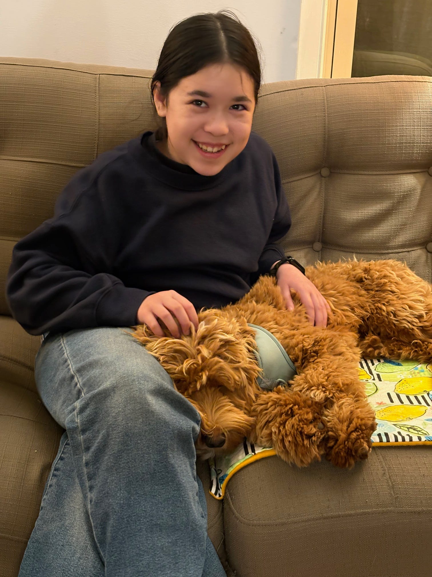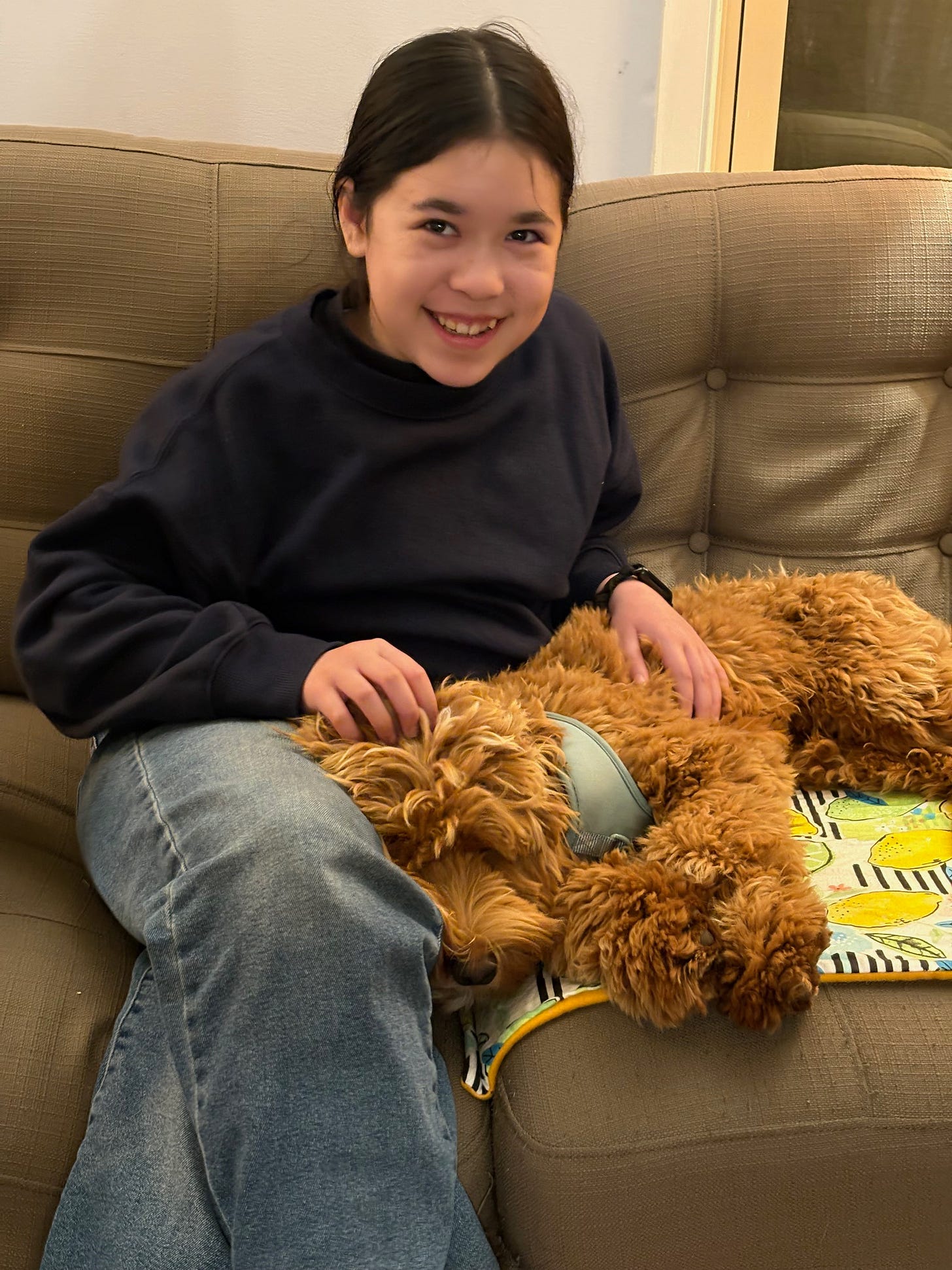 Our hearts melted! He is a bit shy, definitely cautious, very loyal, and incredibly sweet and smart. He came to us already crate and house trained and knows how to sit and come to you when told to. The entire litter was named after characters from The Office. After we voted down “Dunder Mifflin” as a name, haha, Nora noticed he had the same coloring, eyebrows and reserved personality as…Toby! So Toby it is.
