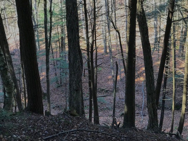 A look down a sloping ravine