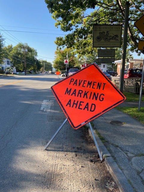 Crosswalks and stop bars are being repainted throughout the downtown area of Norwich intermittently over the next several days. Please use caution when driving through town, and expect some traffic delays.