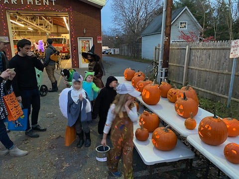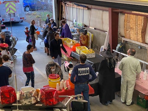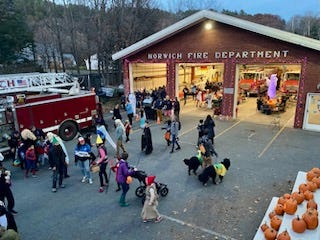 The fun began at Tracey Hall with face painting, followed by cookies, cider and activities at the Norwich Inn. The Norwich Fire Department provided an open house invitation serving hot dogs to all and hosted a great jack-o-lantern event where the carved pumpkins of trick-or-treaters were lit and safely put on display. What fun! Of course, nothing calms your nerves on a frightful night like this other than a comforting cup of hot chocolate and the Norwich Farm Creamery was on hand to do just that. The Children’s Art Studio featured a slide show of a Jane Goodall chimpanzee themed event. There was something for everyone. Festivities wrapped up at the Norwich Congregational Church for a Hospitality Halloween where hungry trick-or-treaters were treated to soup, bread and cider.