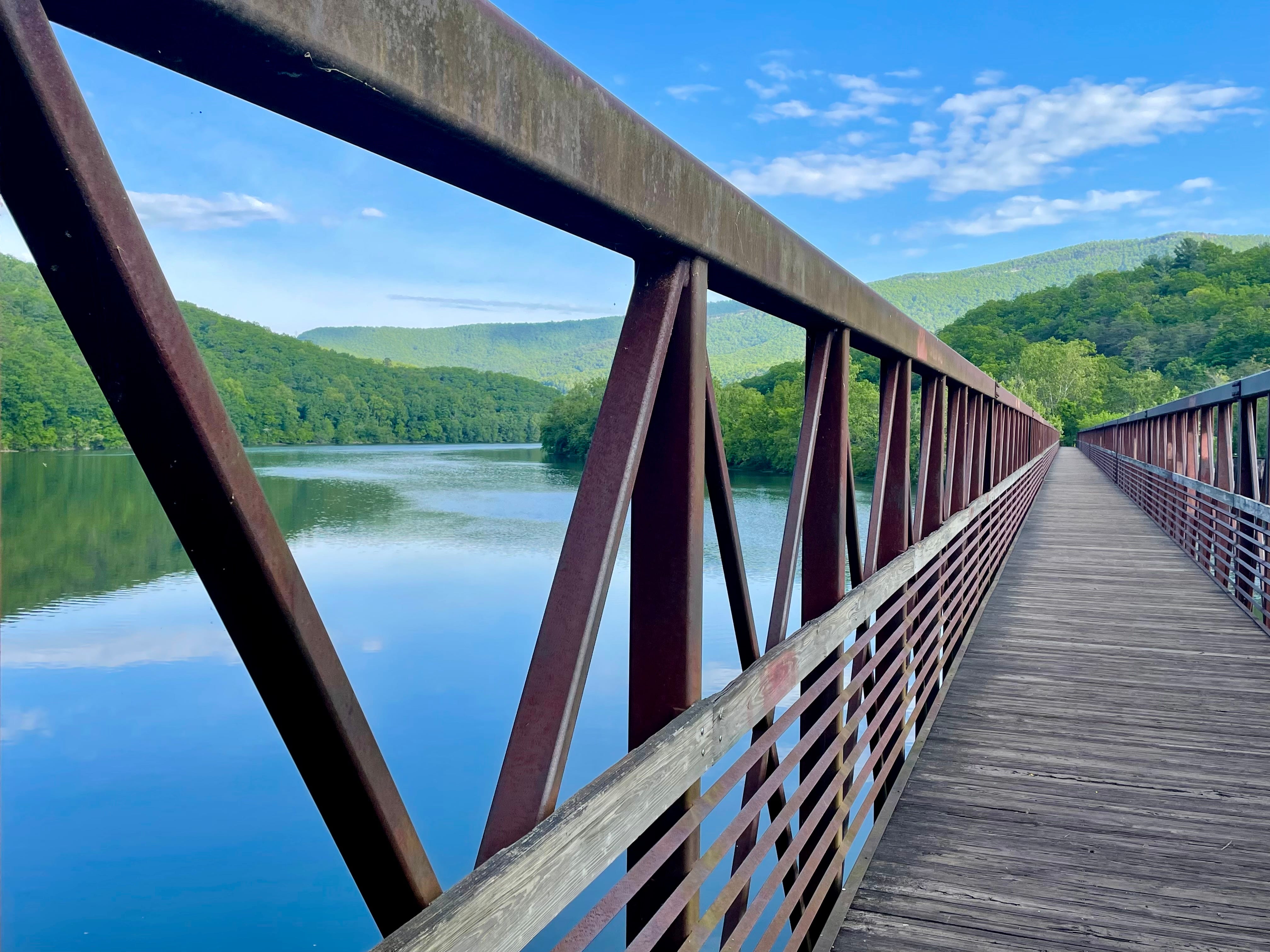 The AT bridge across the James River in central Virginia, first part of May (The trail climbed about 3000 vertical feet just the other side.)