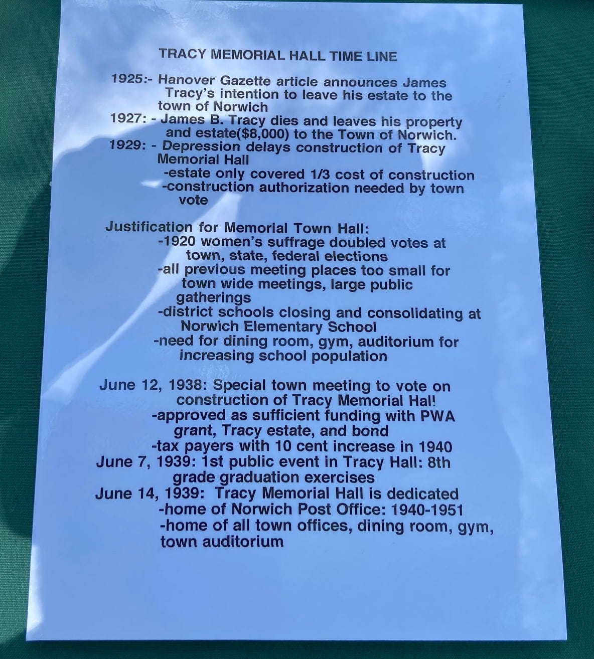 A special thank you to all who participated in this event to include Norwich Police and Fire personnel along with our local officials who attended as well as the Boy Scouts and the Norwich Historical volunteers. Music was provided by the Upper Valley band.
