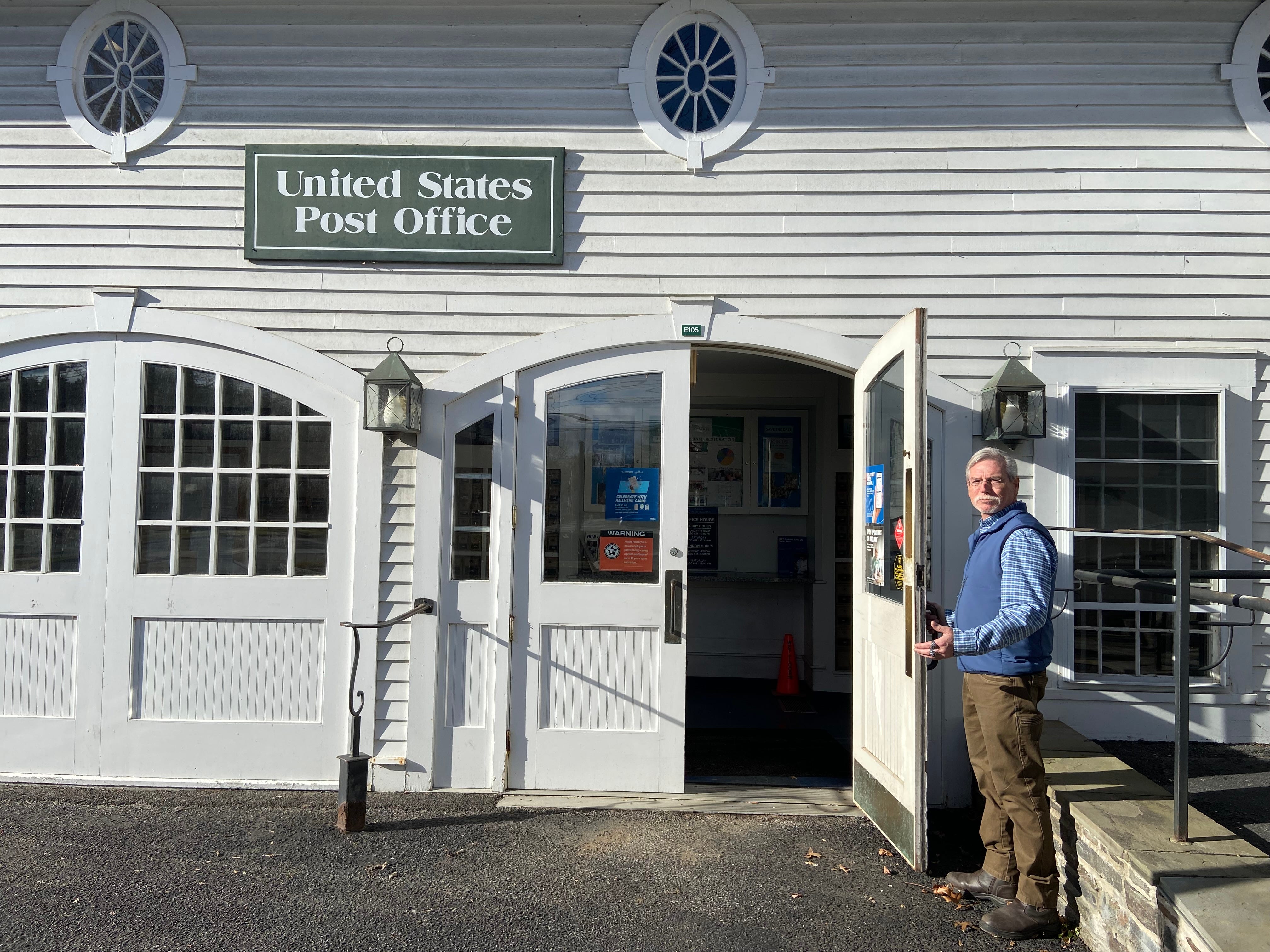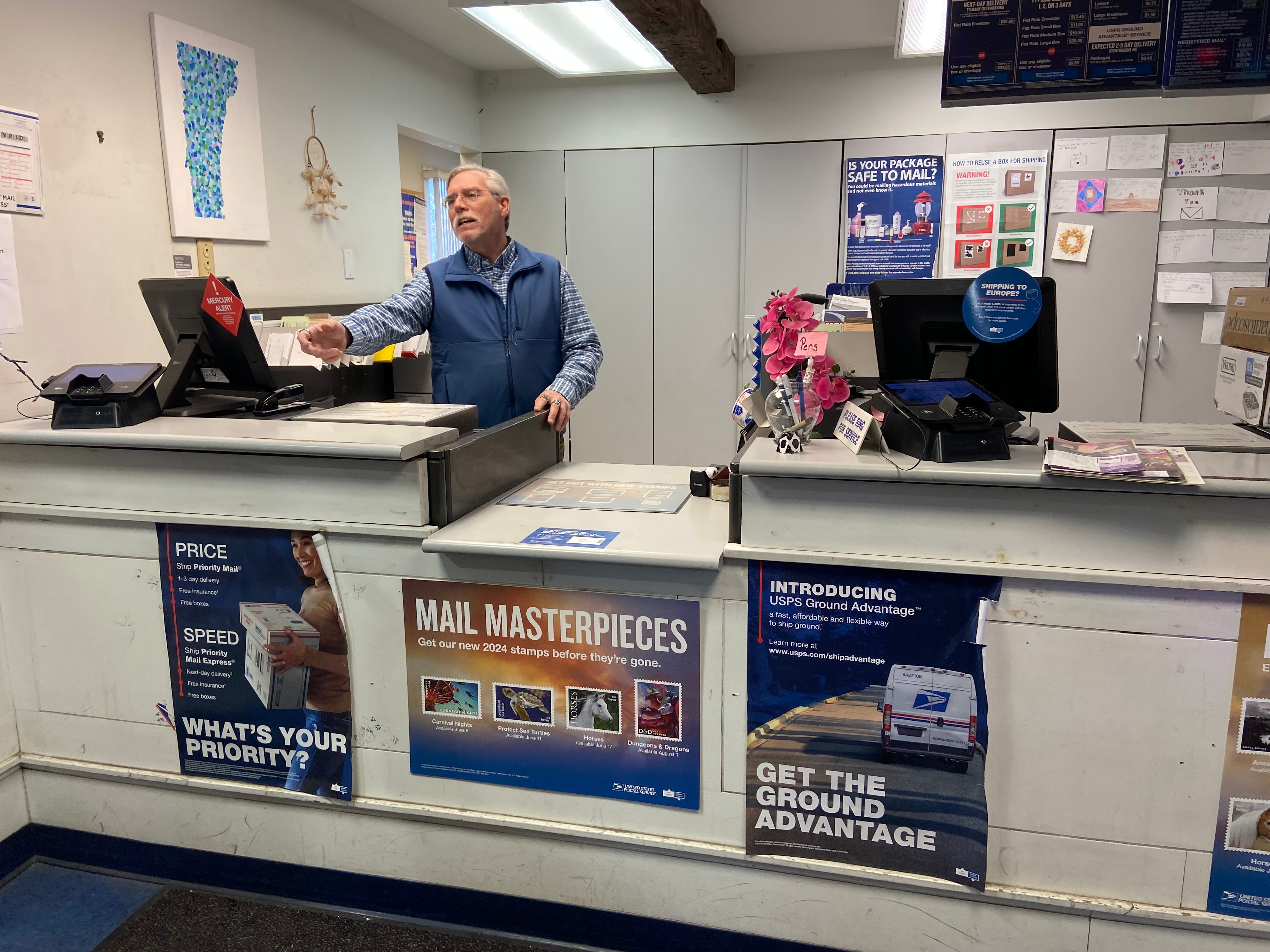 Norwich Postmaster Mathew Swain inviting you into the Norwich Post office for all your mailing needs and hoping that customers pick up incoming packages early so as not to create a back log this holiday season.