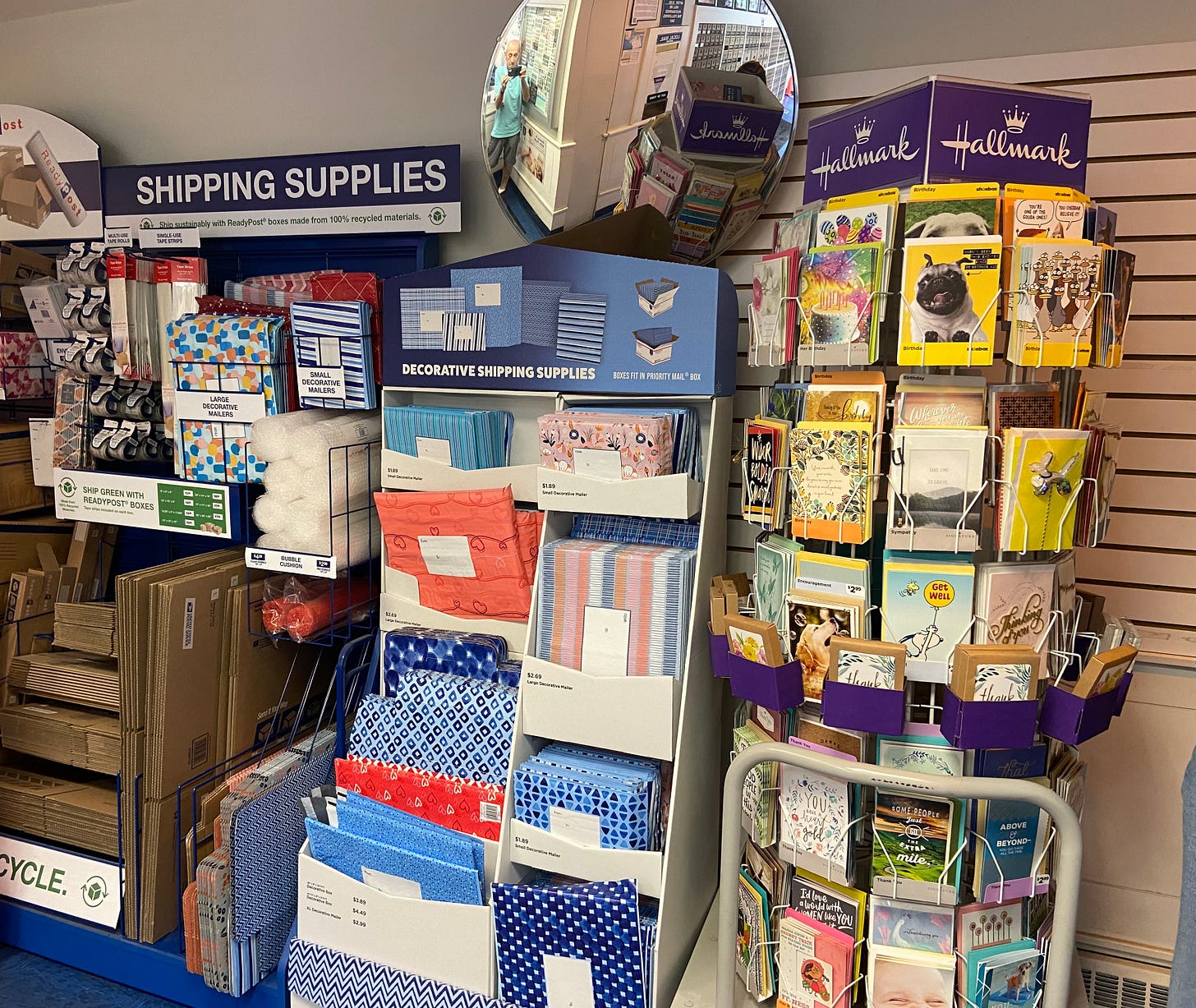 As I walked into the Post office lobby area, I noticed a nice neat display of postal products for sale as usual.