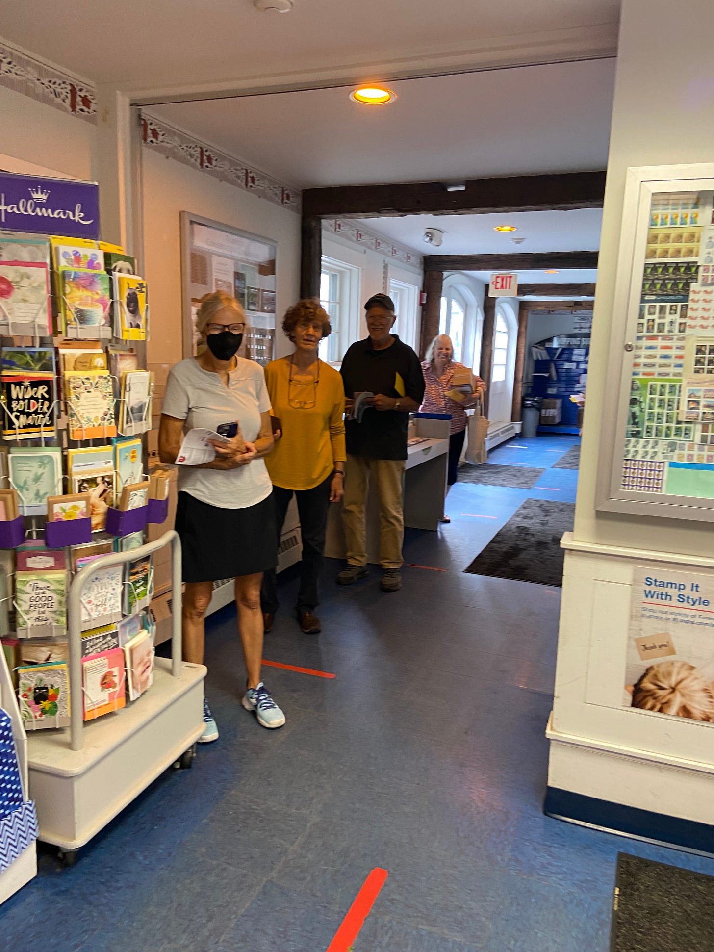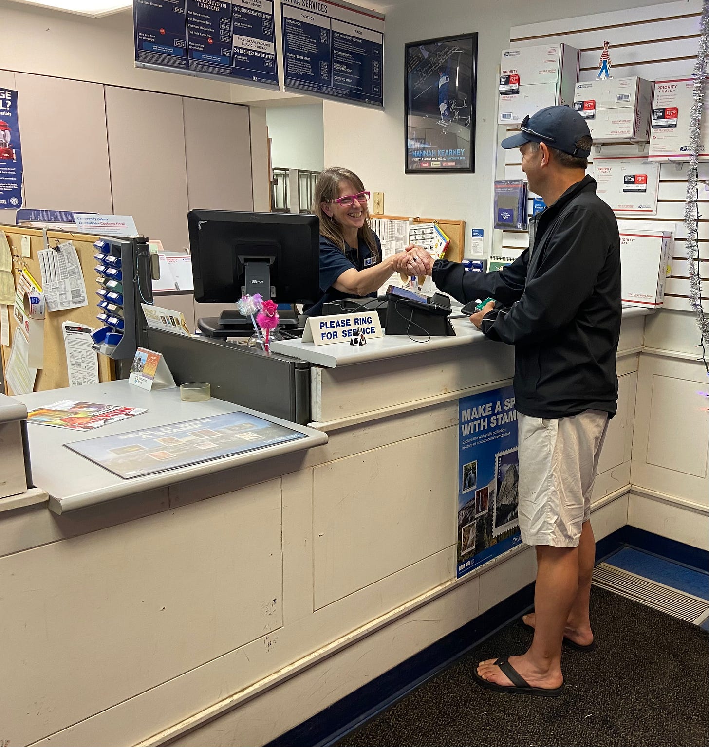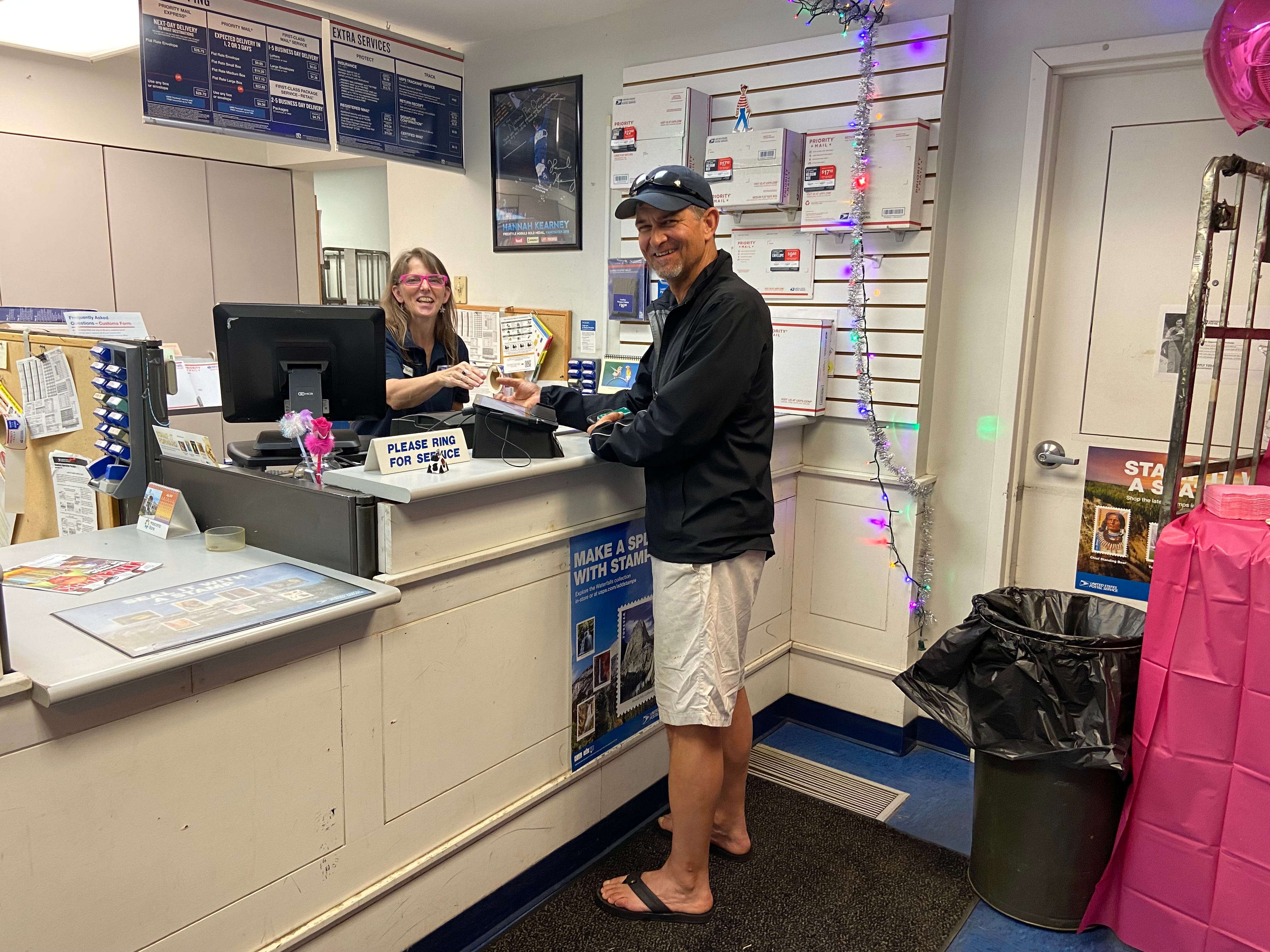 There is a line of customers who were waiting to greet her and maybe do a little postal business at the same time.