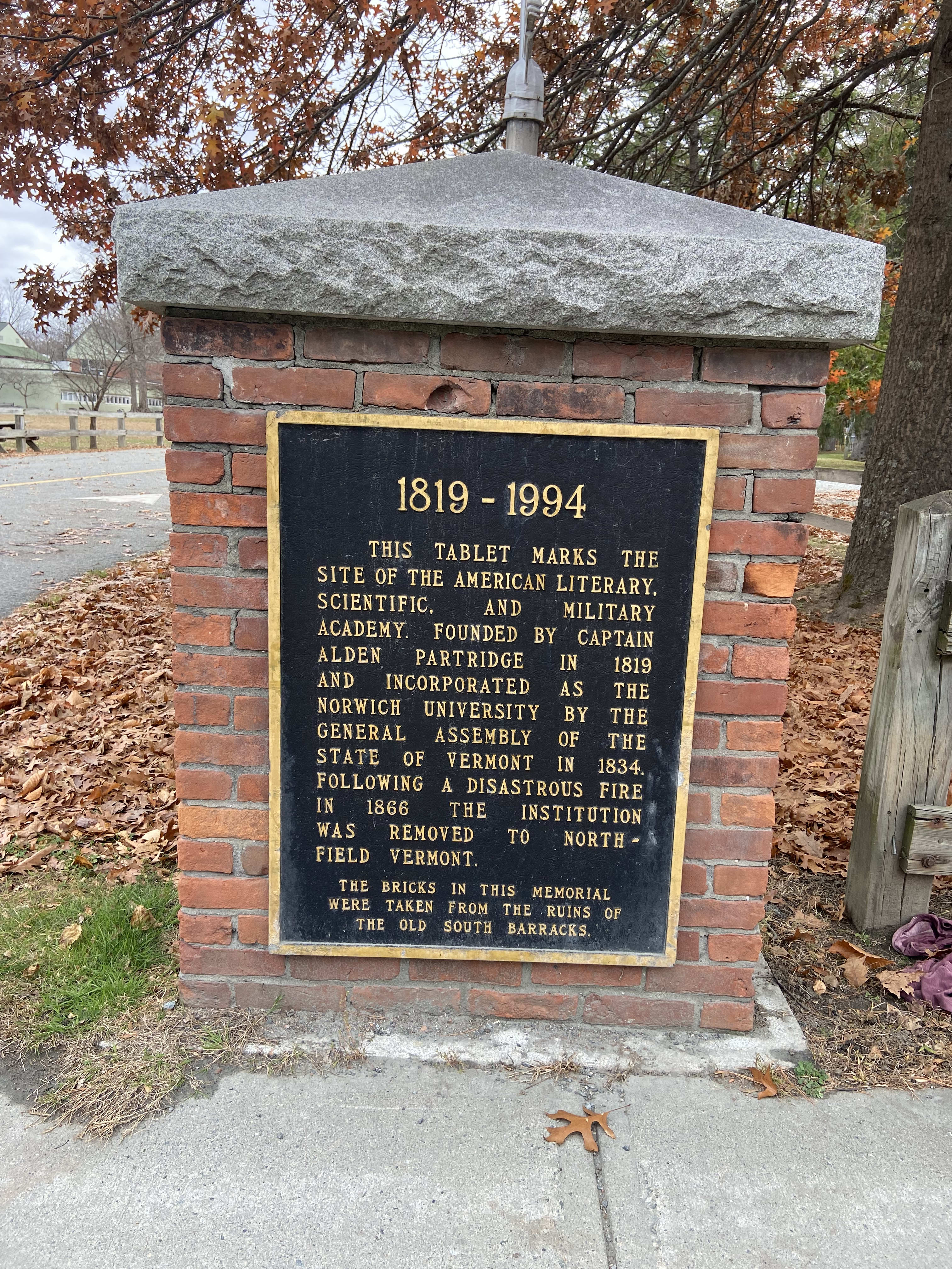 And outside the church, Norwich University Alumni Emily Myers points to the site where the Norwich University once stood and explains the history of the school and it’s founder Captain Alden Partridge.