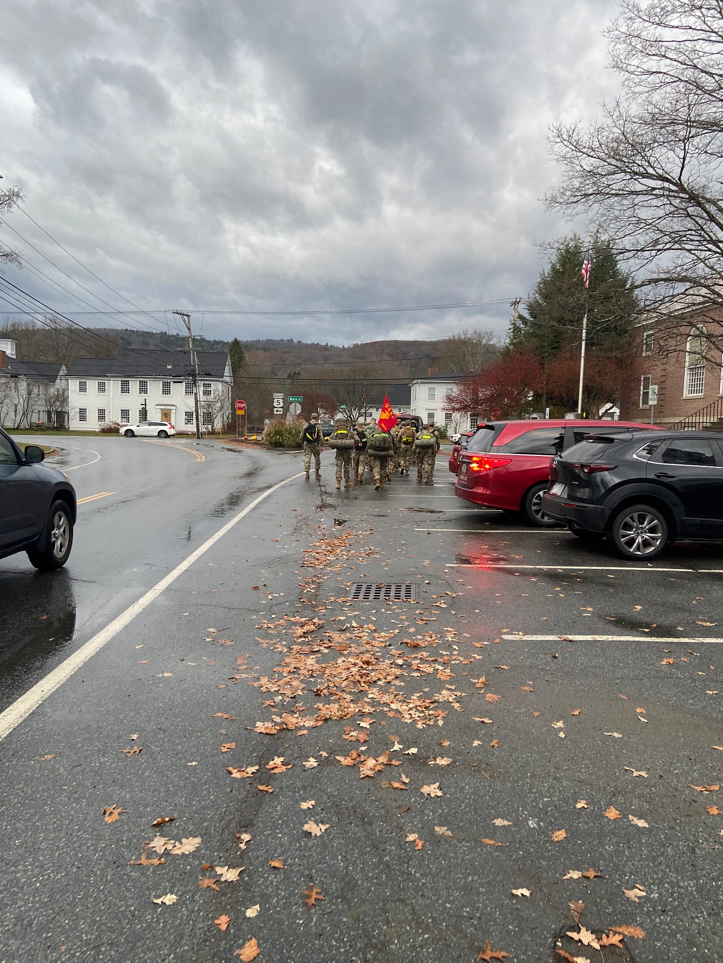 Yesterday morning on my way to work I noticed soldiers or should I say cadets for now leaving the Congregational Church and I thought it must be their annual Legacy March/Trek to their campus in Northfield VT.