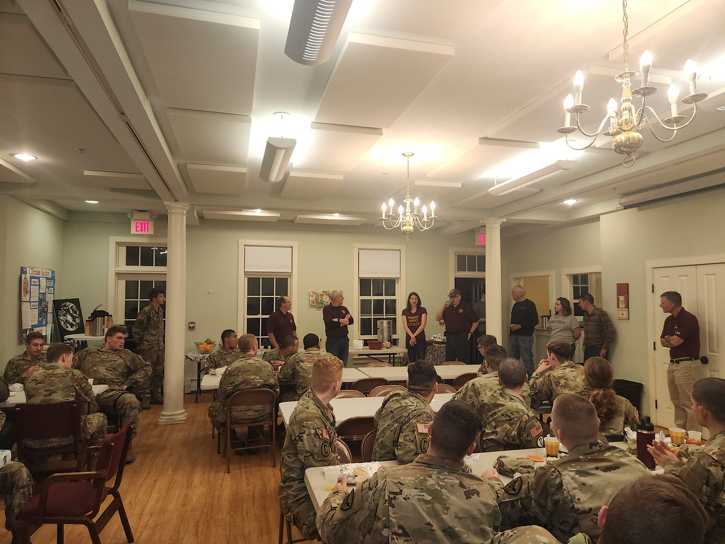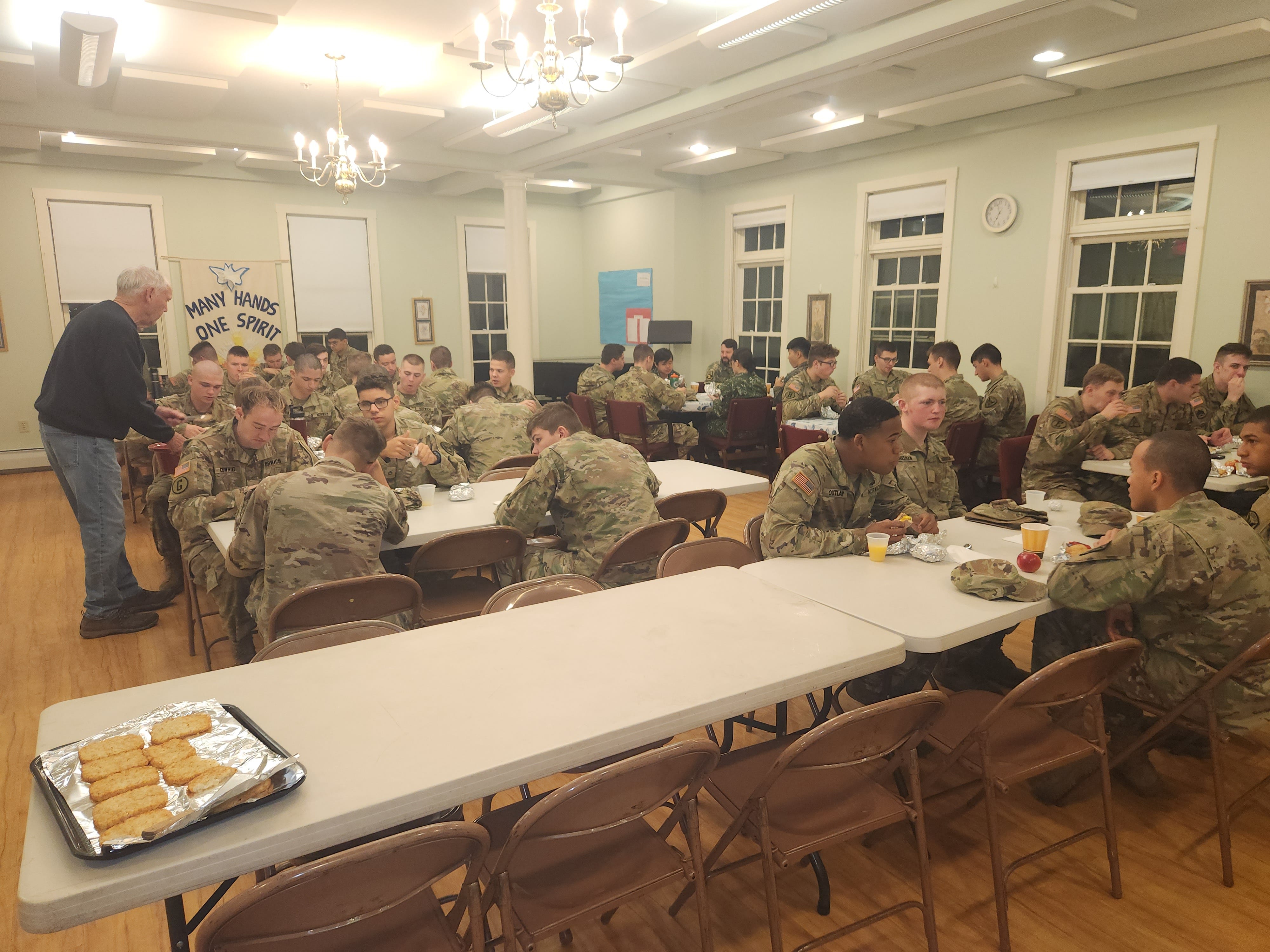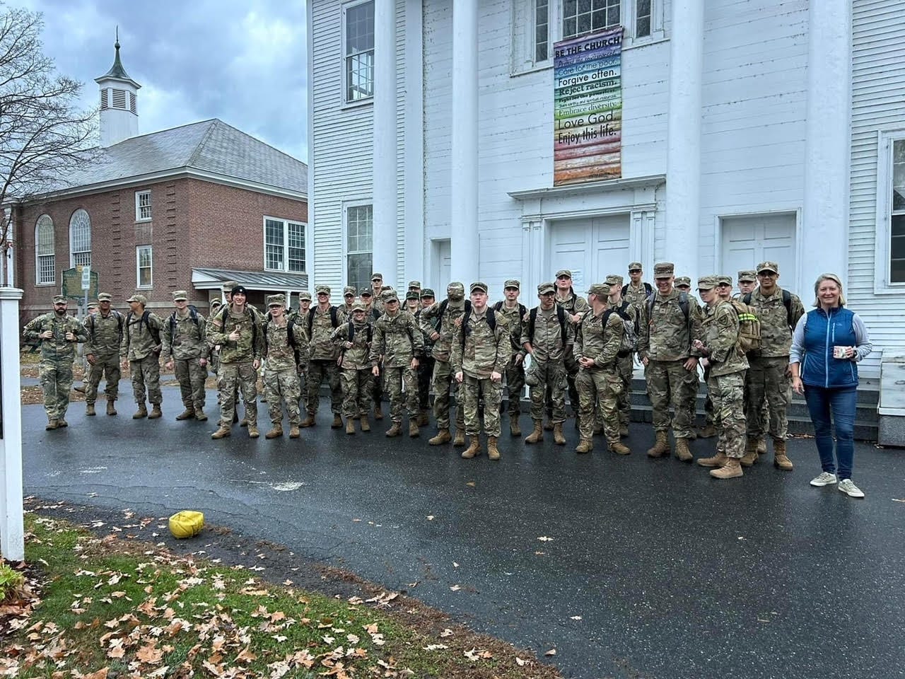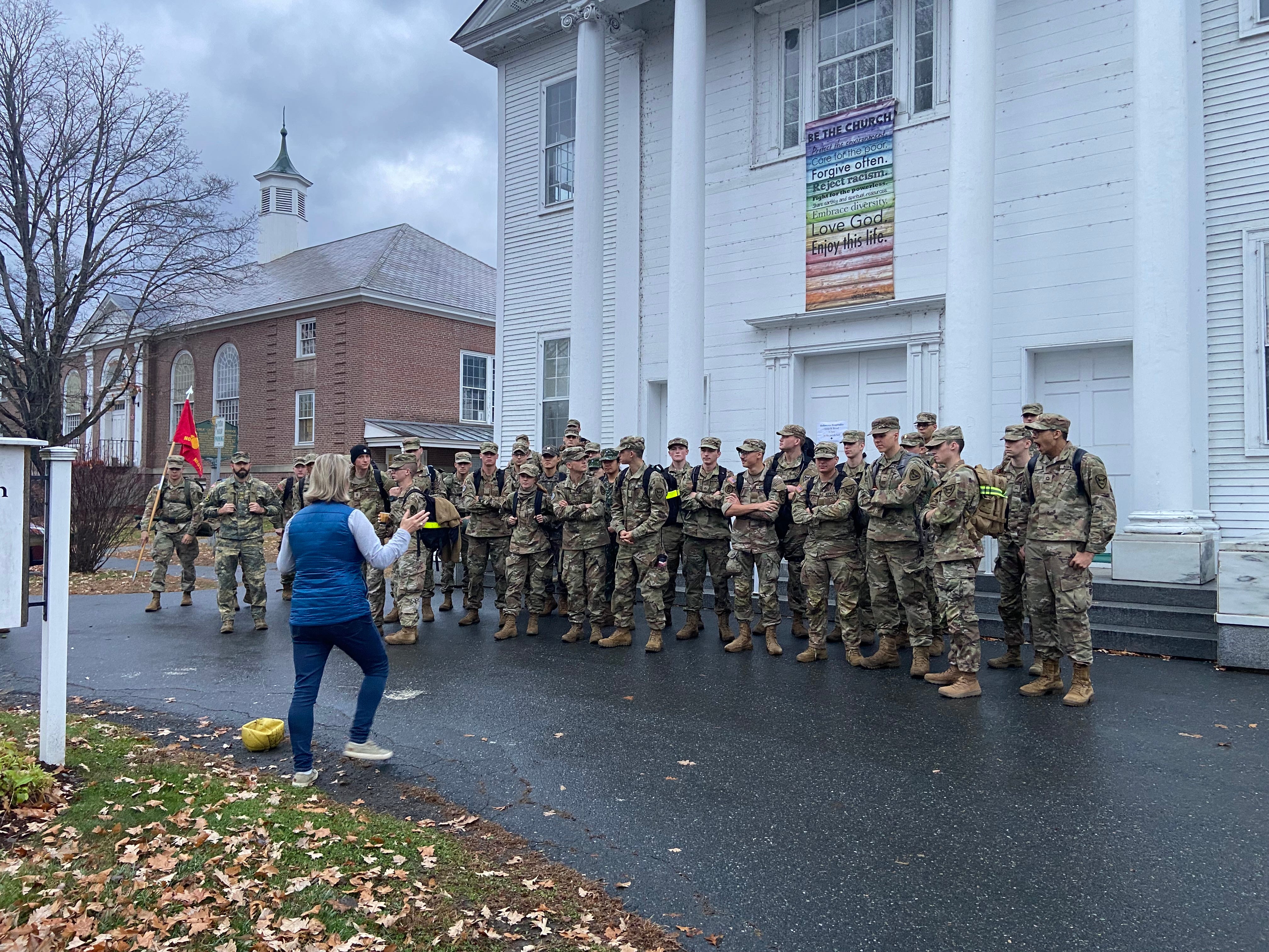 Every year, Norwich University cadets participate in a Legacy March to learn history, test their endurance, build bonds and fundraiser for the Veterans Place in Northfield, VT. The 50 or so cadets start their 50 mile march at the Norwich Congregational Church where members of the Norwich University Upper Valley Alumni Club prepare breakfast to get them on their way.