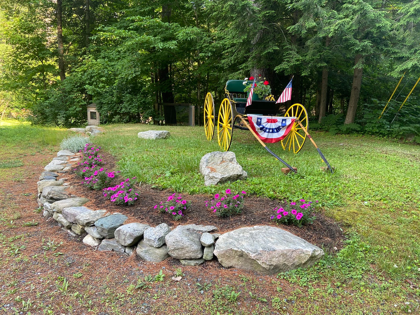 Looking great and the wagon is decorated with a patriotic banner for July 4