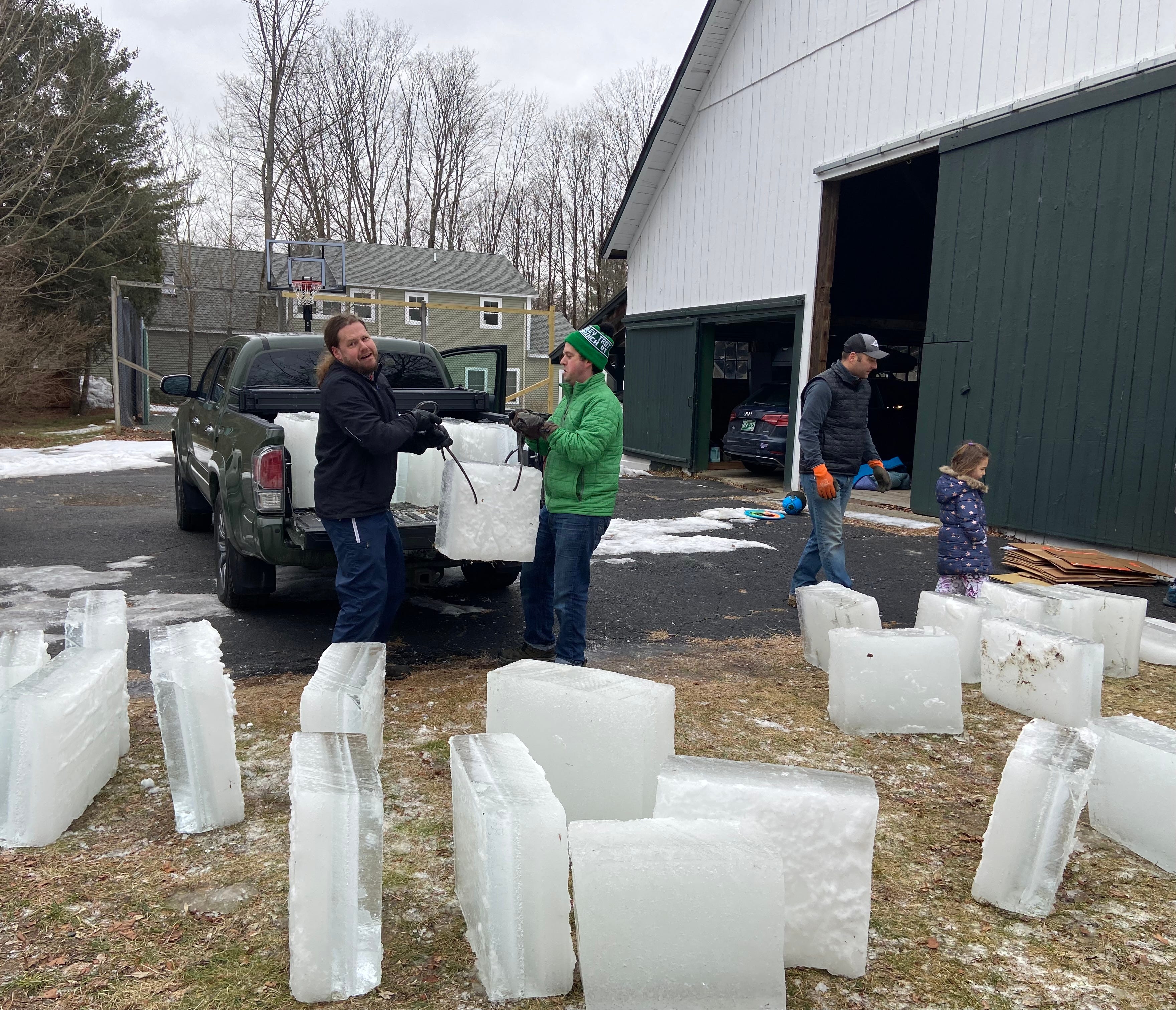 But first the ice has to be loaded piece by piece onto a truck