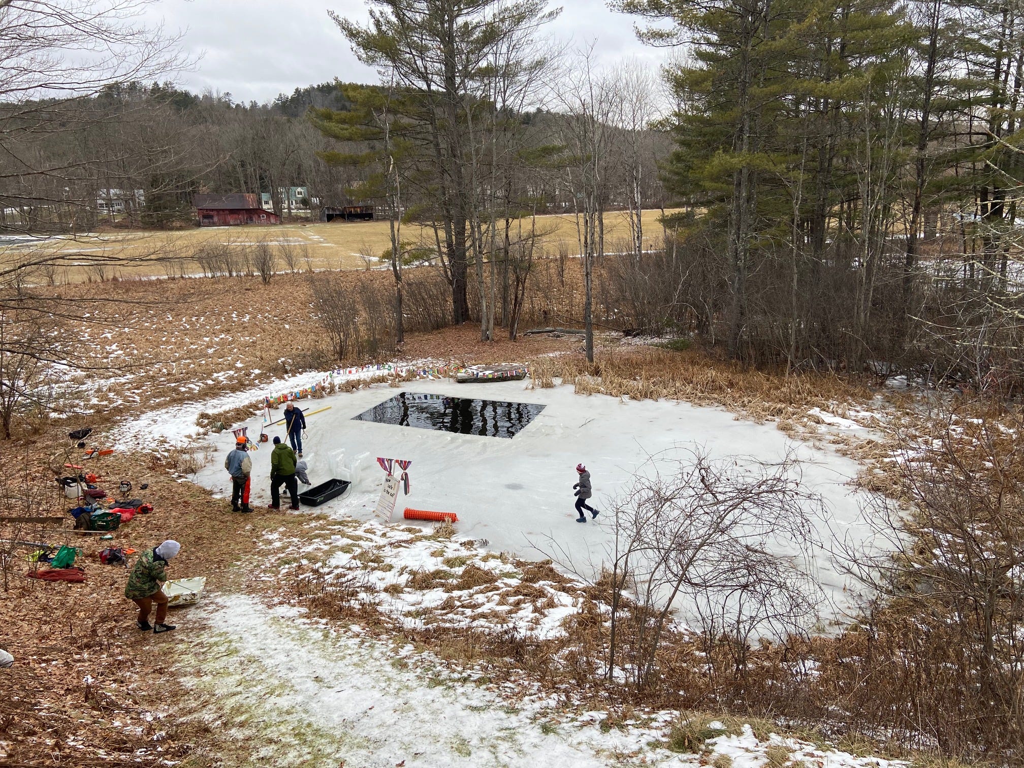 Something is happening here-sledding or skating perhaps-or maybe ice fishing?