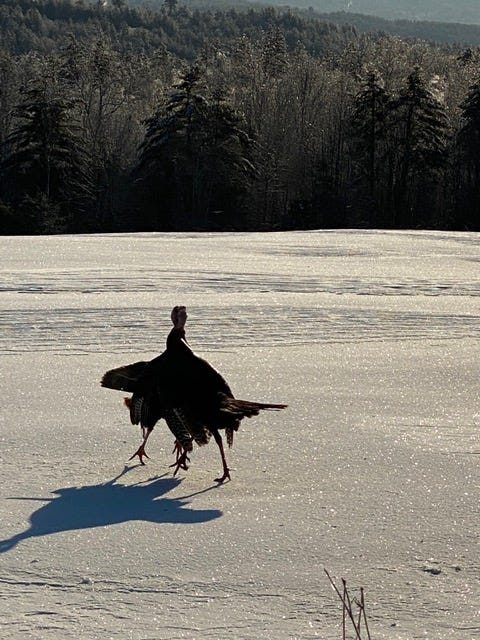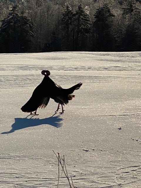 Looks like a turkey just strutting around, I would say, maybe protecting the turf.