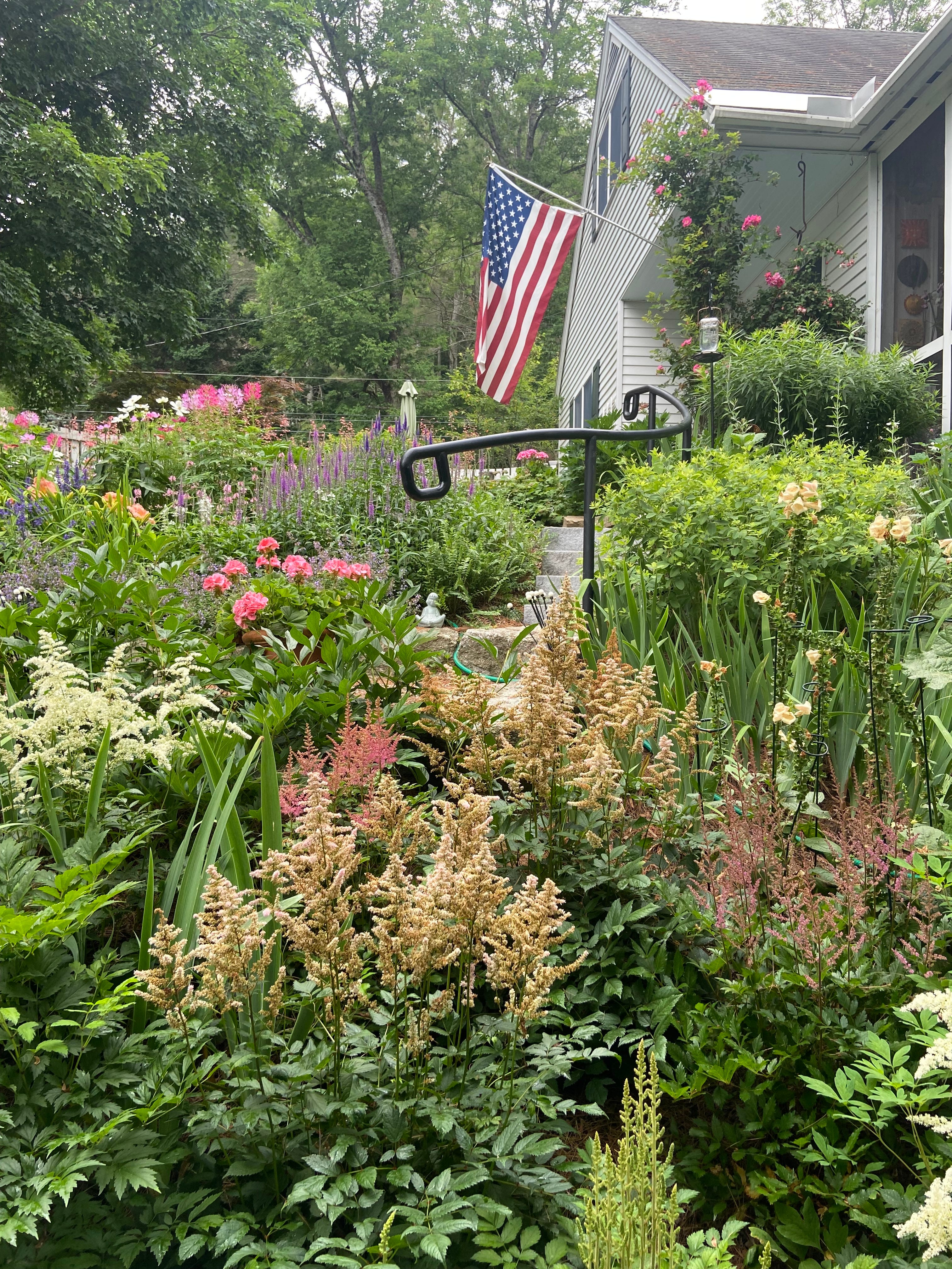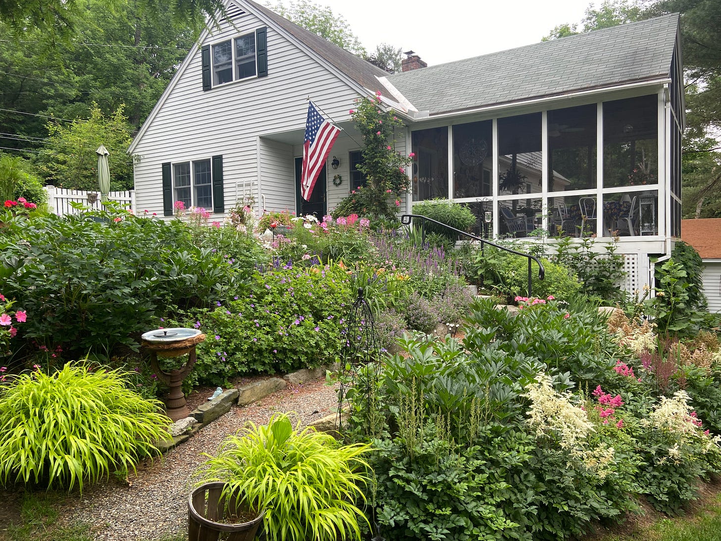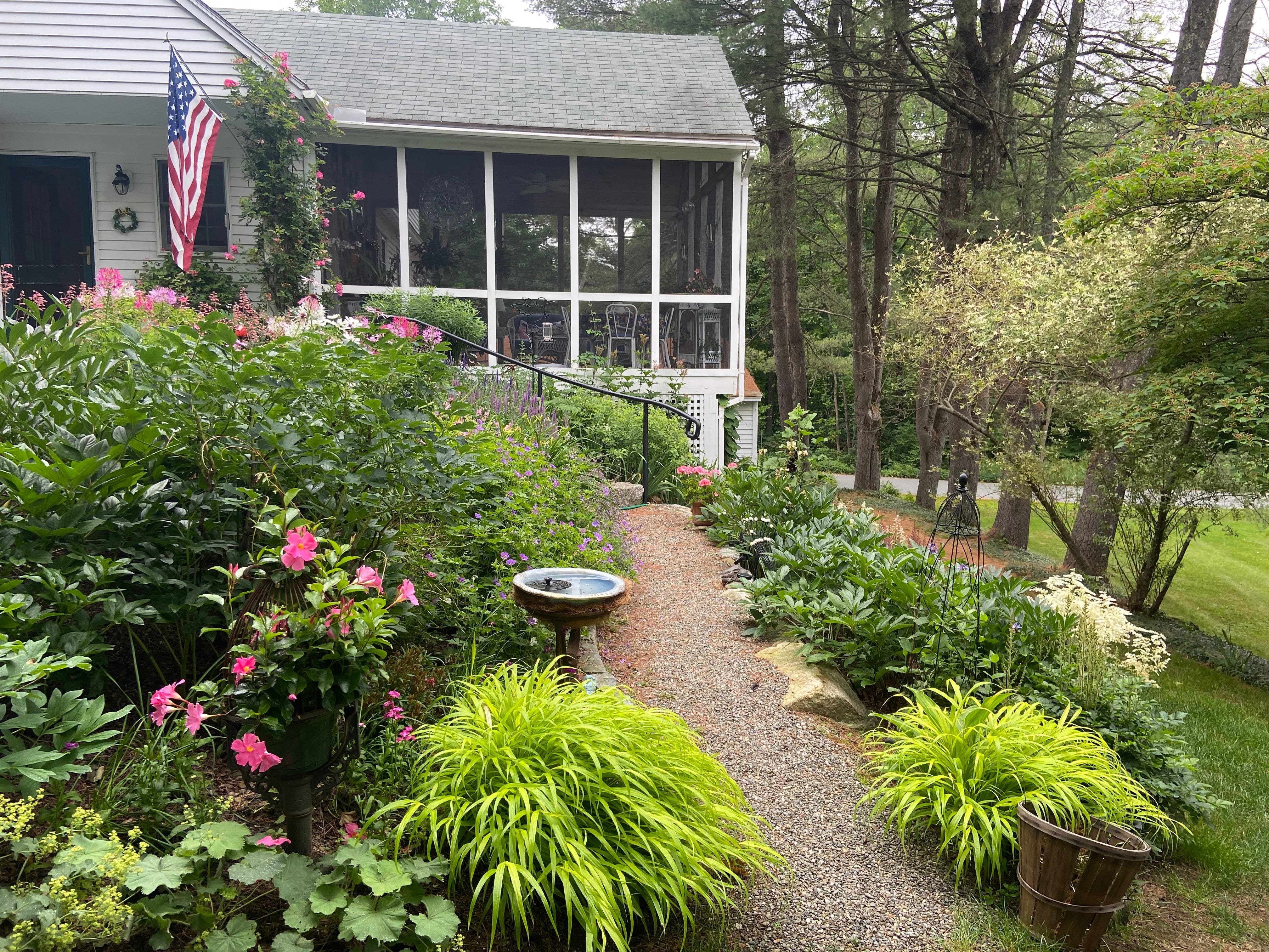 The photos below are a showcase of Marty Candon’s beautiful gardens with many varieties of flowers and shrubs and stunning colors and even a bird house or two.
