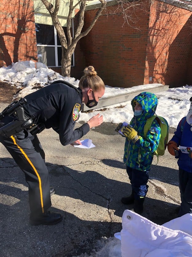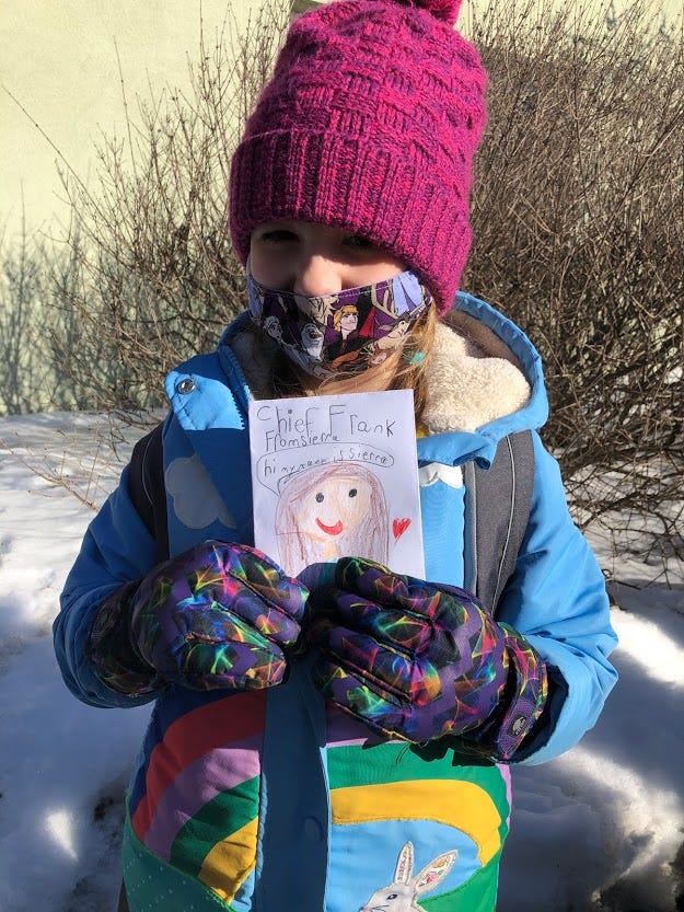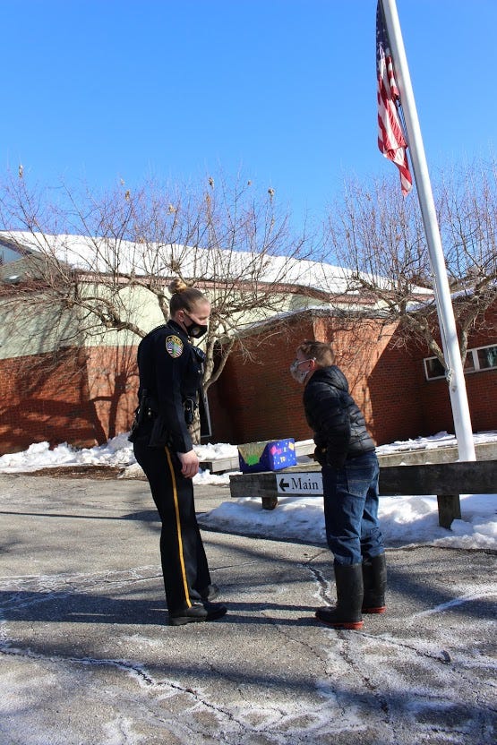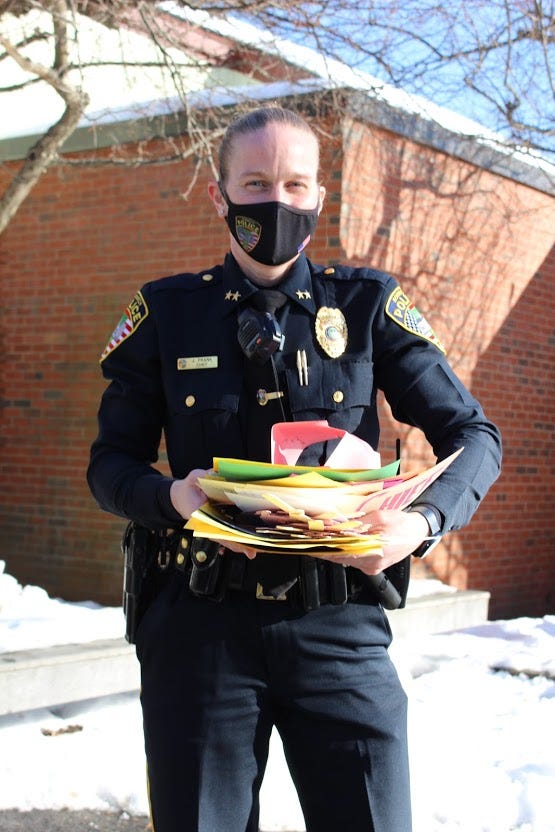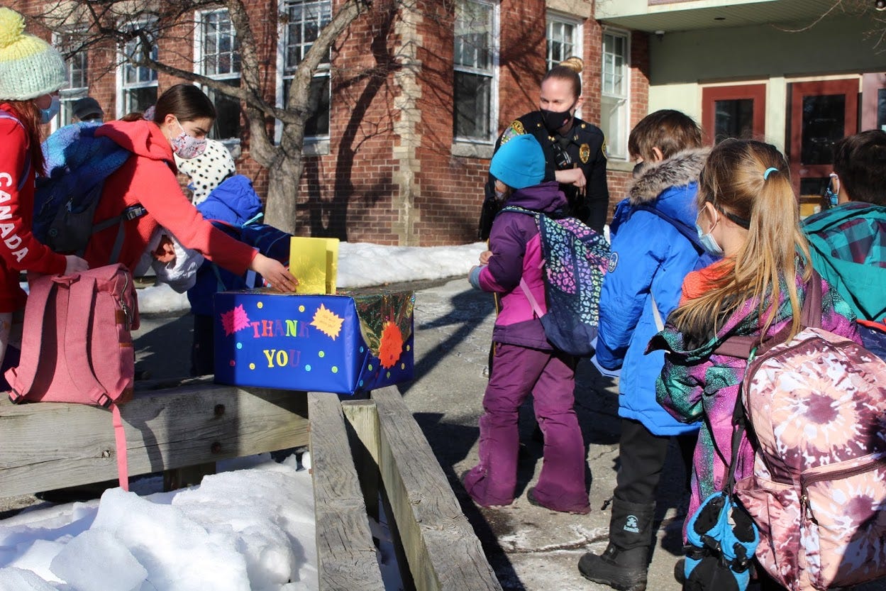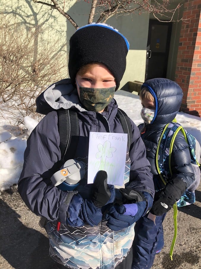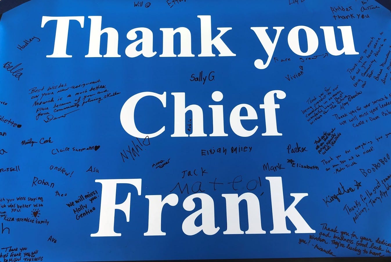 I am sharing a link of some photos that were taken yesterday at the Marion Cross School. They were sent by Alexa Manning and Caroline Gollub, and there may be more sent in to me. As the students left school for the weekend, they stopped for a visit and to drop off thank you cards to Chief Frank as this was her last day in Norwich before moving on to her new assignment. The cover photo for this story is a photo of one of the two banners provided for the community to sign.