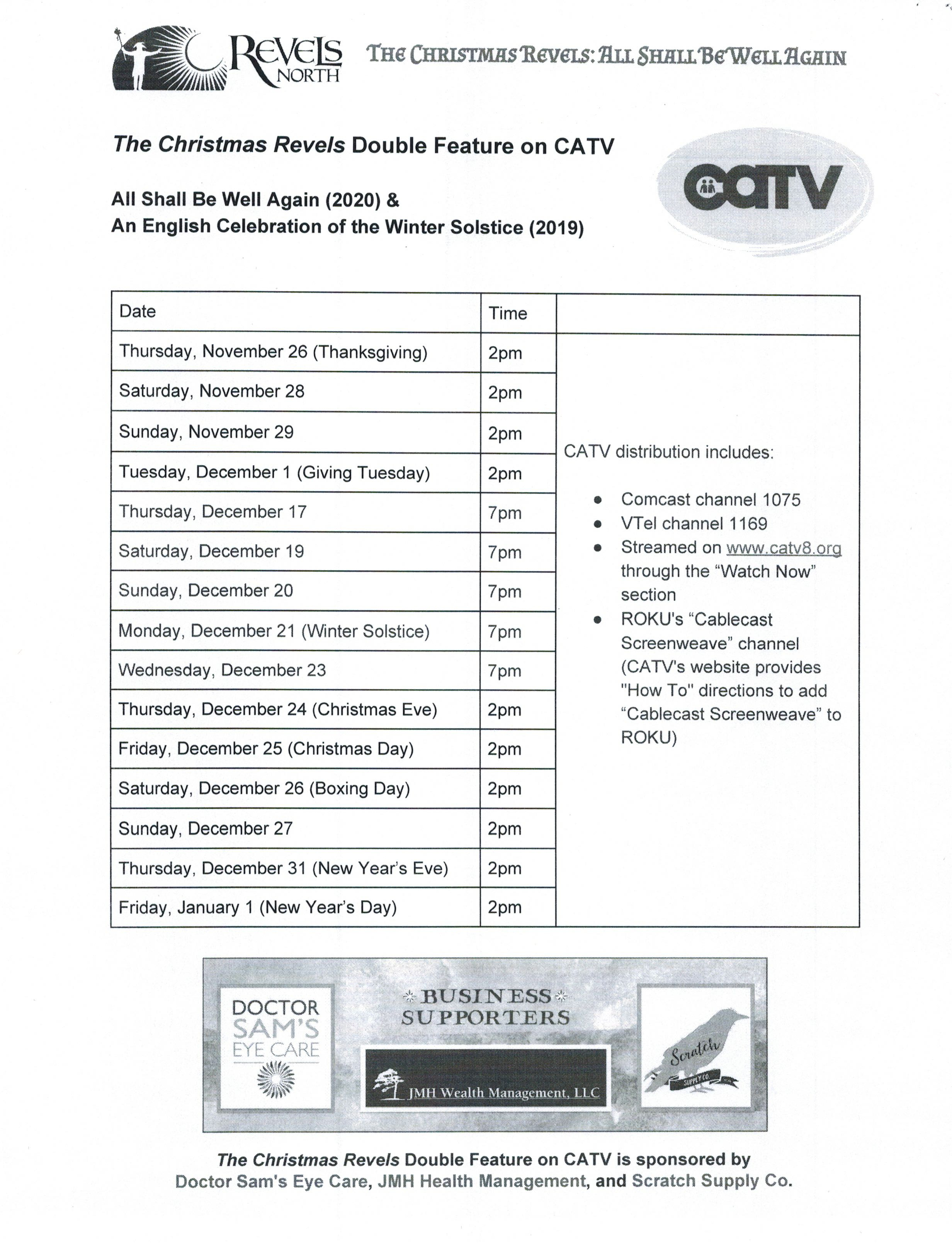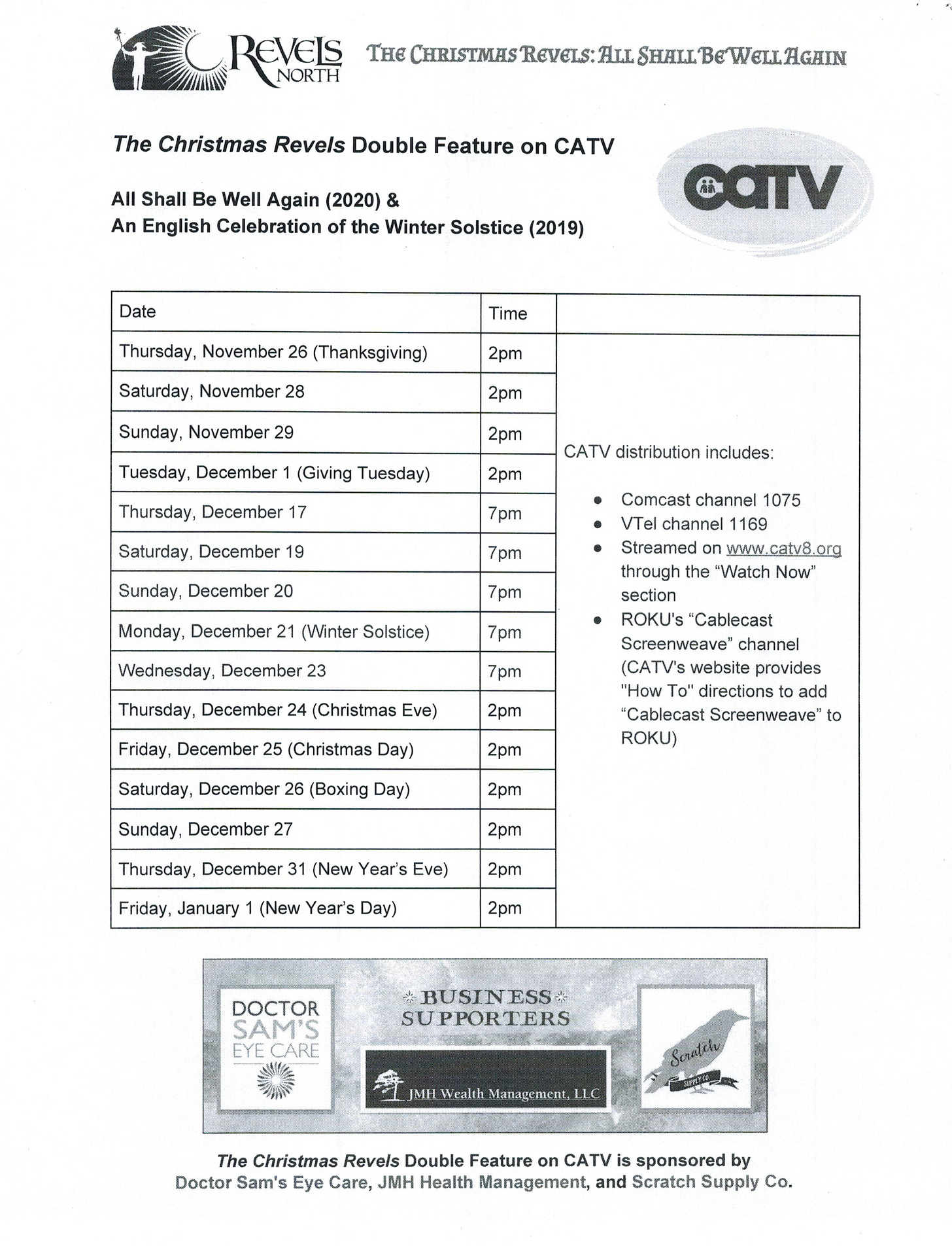 I wanted to share the exciting new 20 minute Revels holiday puppet and animation movie and the 2019 Revel production - starring many Norwichians. Showing on CATV at the listed dates/times for free (see attachment) or for rent on- demand on the CATV website.