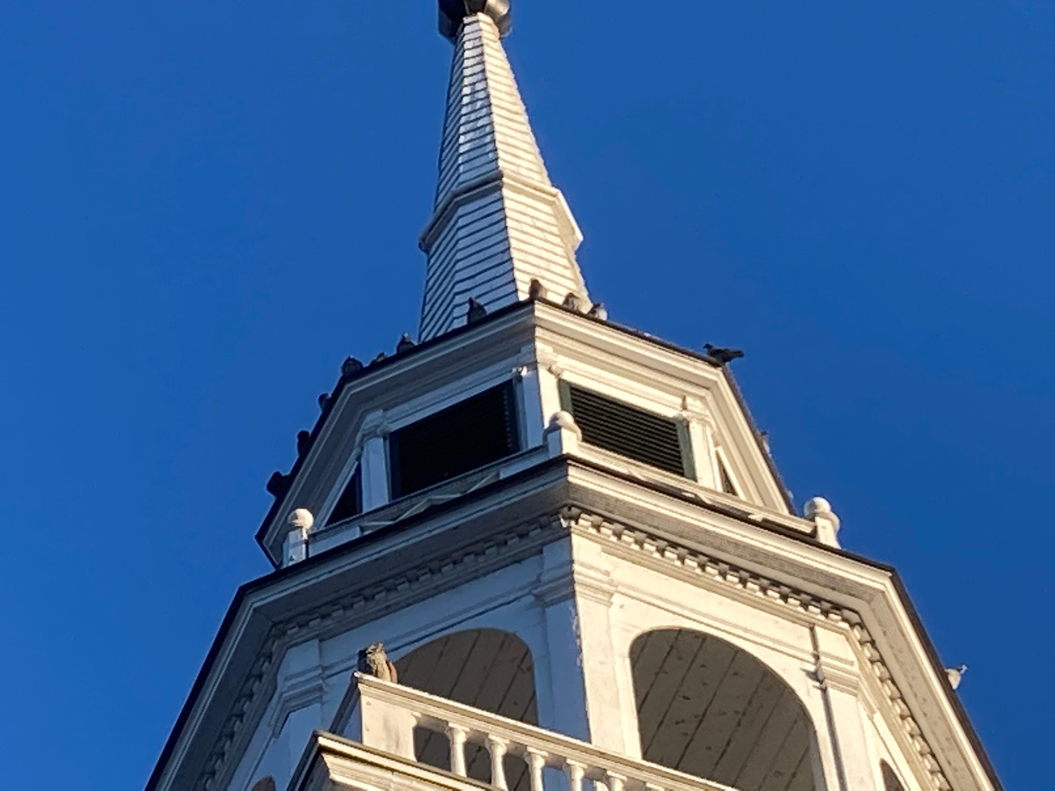 They say that if you place a decoy owl somewhere you will deter a flock of birds from congregating there but in this case it appears that these pigeons might be protected by a higher power if you will.