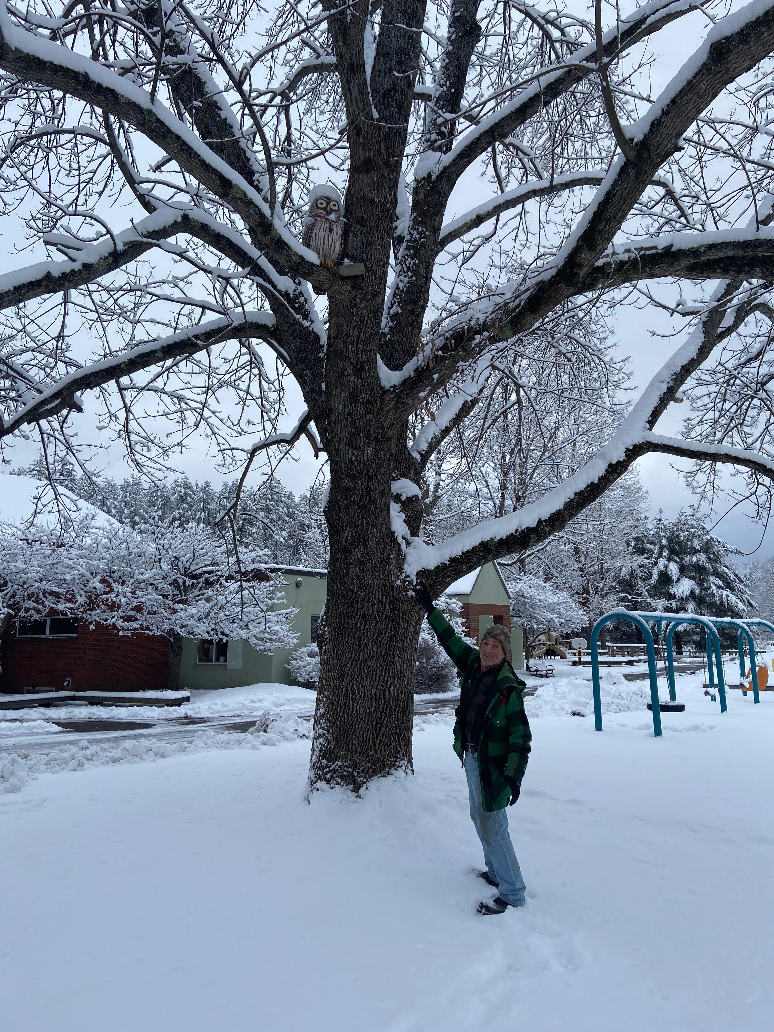 I showed Dan Goulet (Sexton for the Congregational Church) this owl at Marion Cross and asked if a larger one would be more effective? The answer was absolutely not, although he really liked carvings on this owl.