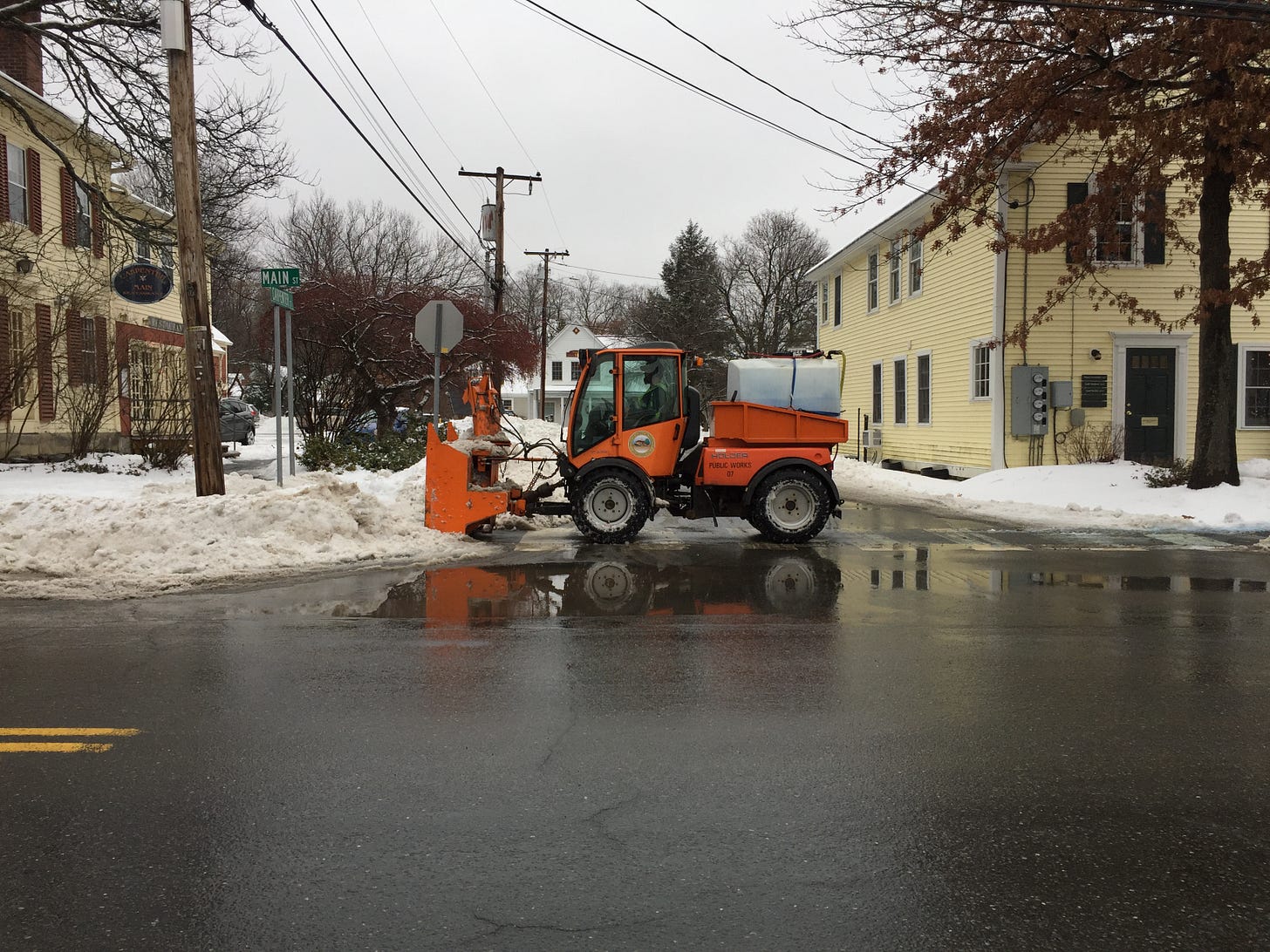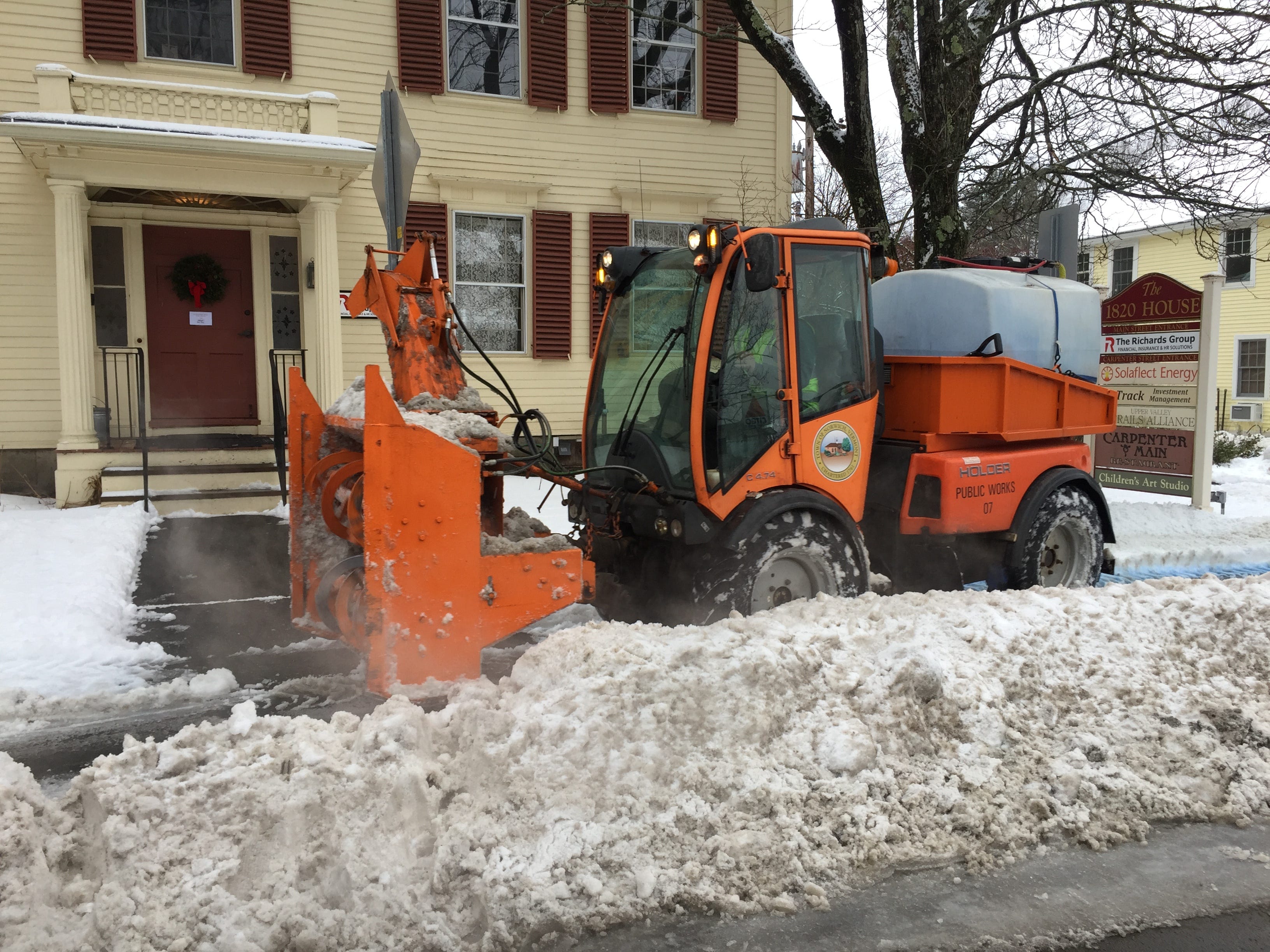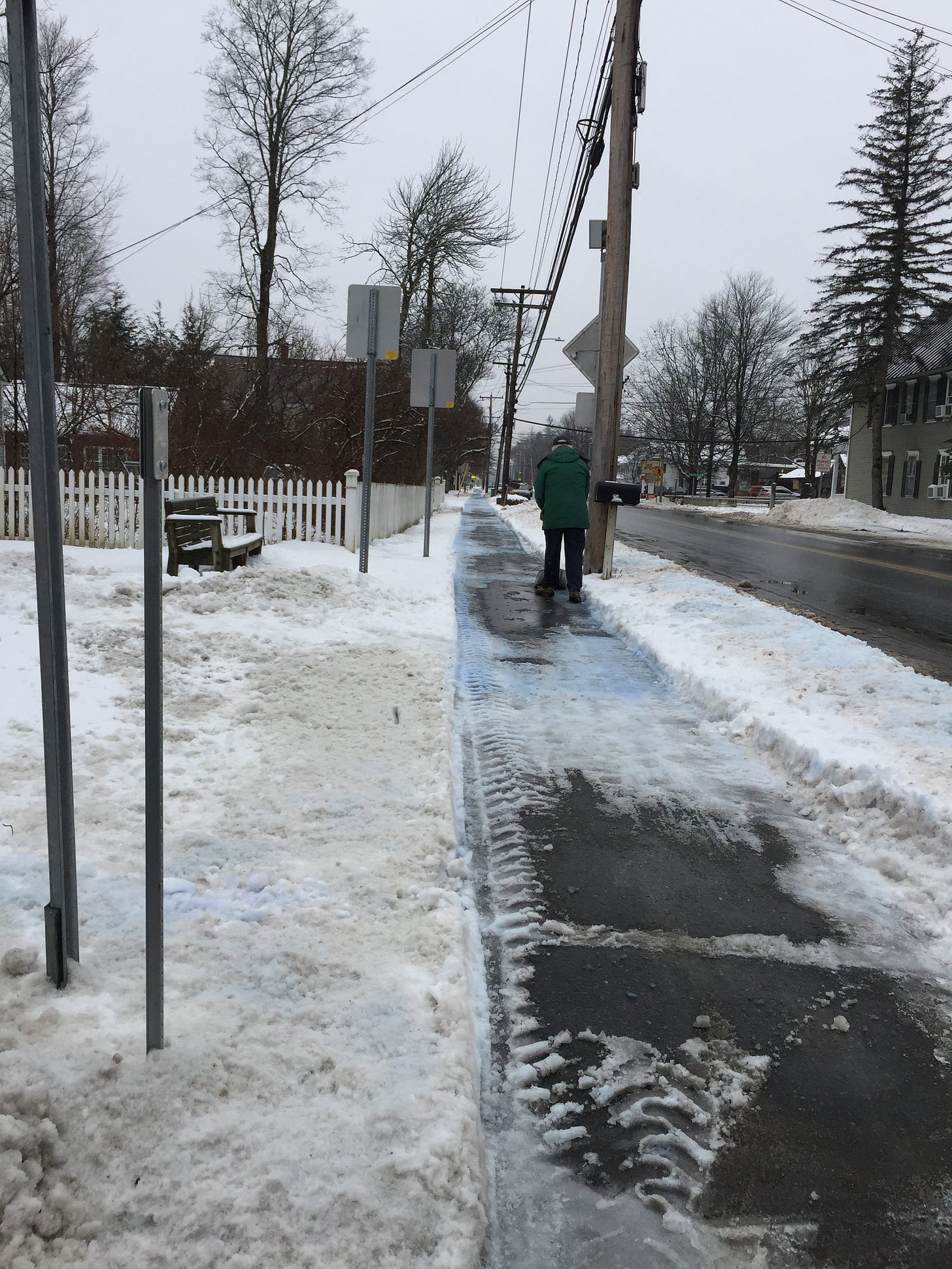 The winter storm of the last two days left us with some snow and freezing rain to contend with but it was nice to have the sidewalk plow out and about doing it’s job to keep the sidewalks clean. There were some recent repairs that needed to be made, and they say timing is everything, as they were done in the nick of time. It was a nice way to start 2020, I would say. There is a photo in this story of a person shoveling the sidewalk in front of the Grange hall. Do you suppose he might be looking for a job with the DPW ? It sure looks like he is trying to impress them.