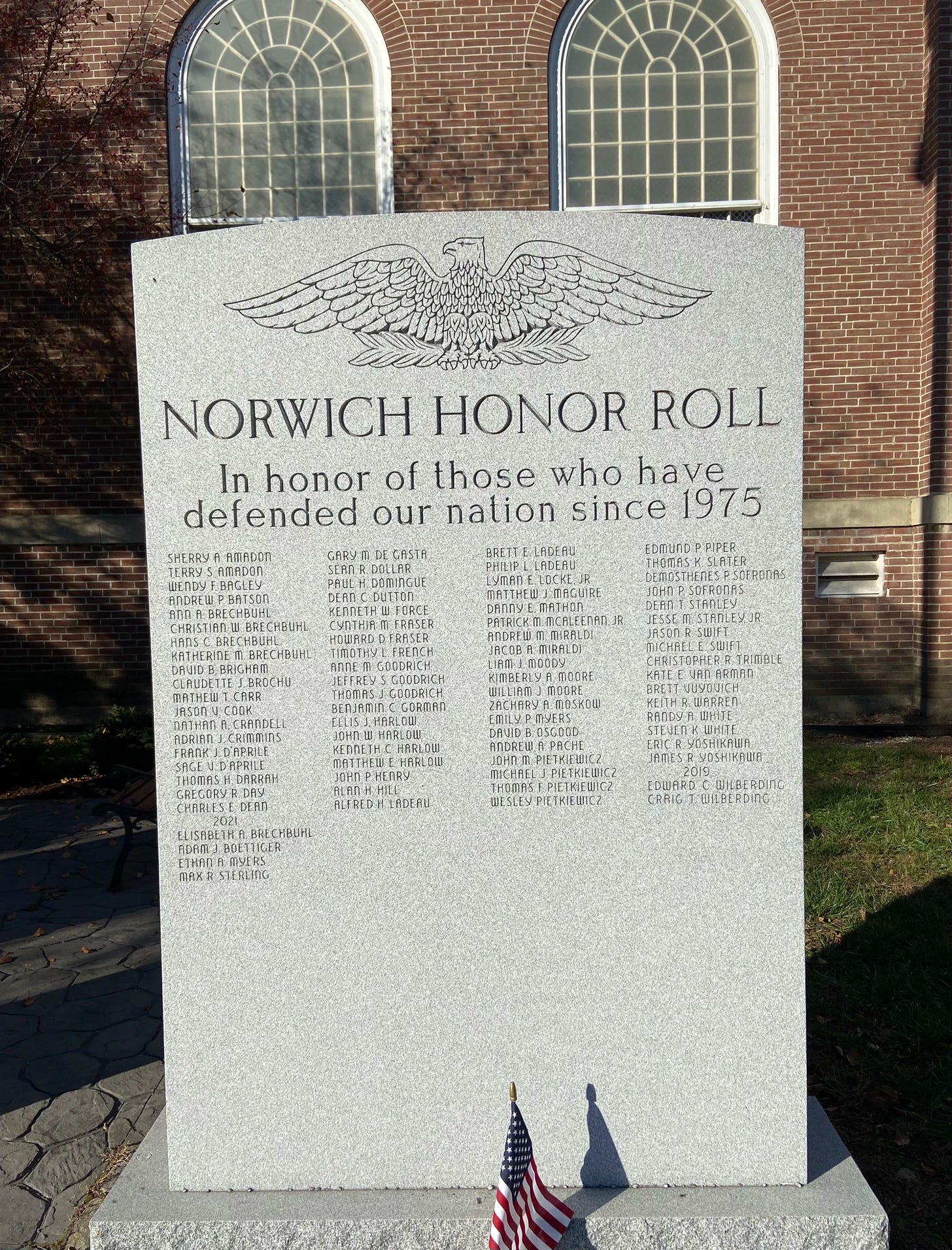 Those who meet the following criteria and submit a completed application may be eligible to have their names inscribed on the Town of Norwich Honor Roll Monument during a future Veterans Day (November 11th) Ceremony at Norwich’s Tracy Hall.