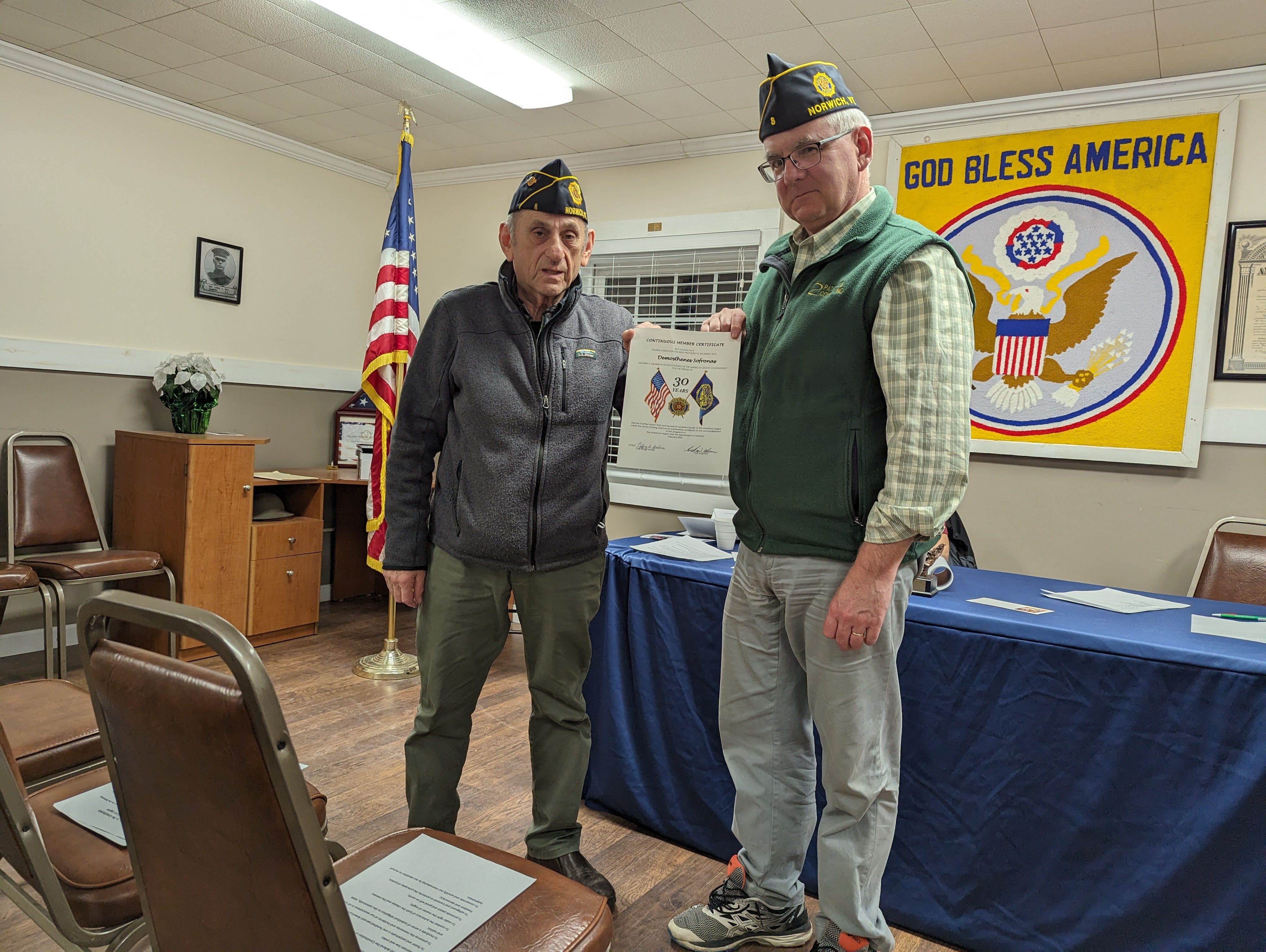 Veterans serving their community receive certificates of continuous member status