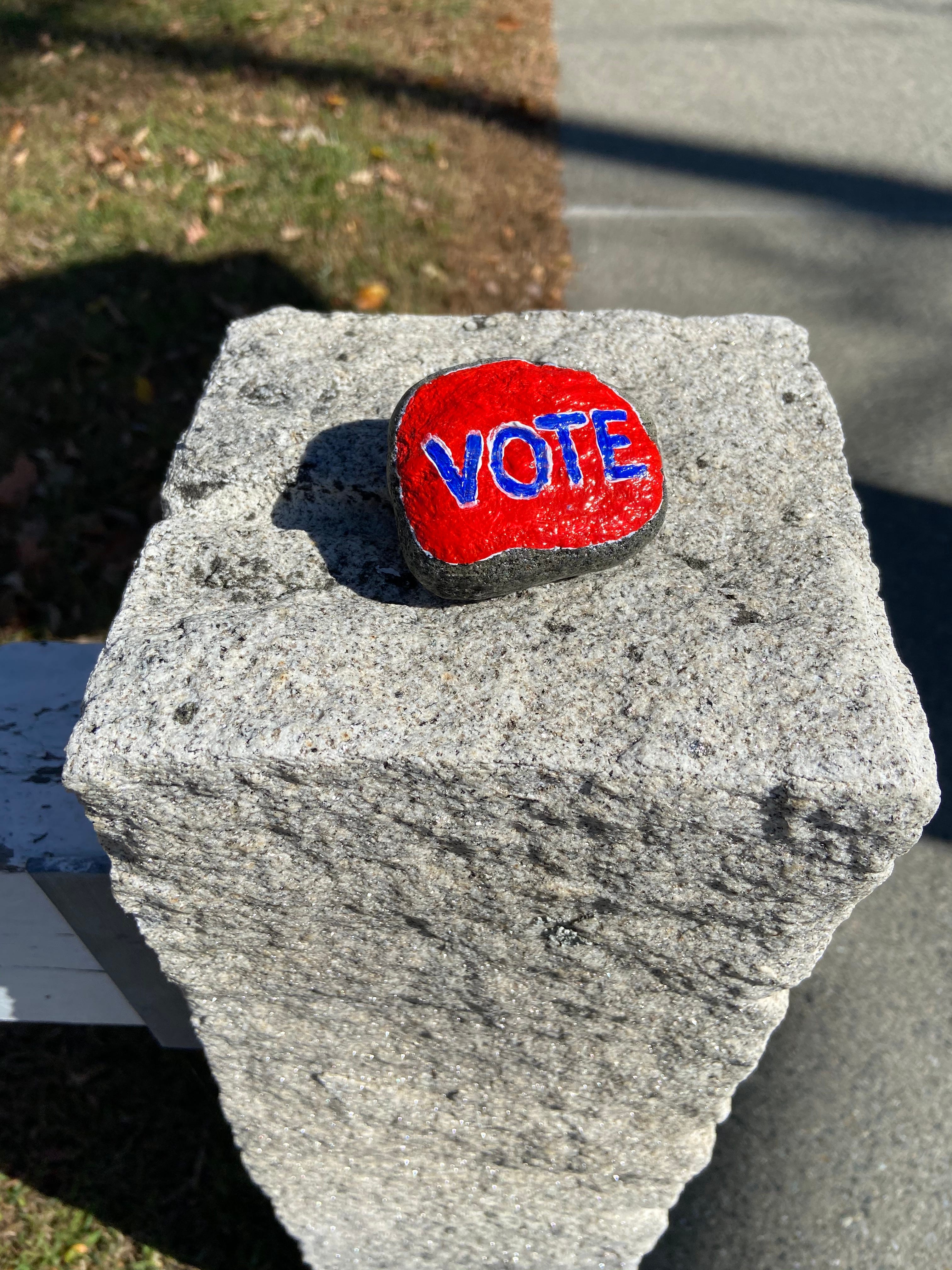 Hello Norwich, Upper Valley and Beyond, I hope you are all staying safe and are doing all the right things to stay one step ahead of this pandemic. There are many beautifully painted little rocks that have been placed out and about. These were spotted by me during one of my walkabouts around town and are located on the fence in front of the town hall. It looks like they (the rocks that is) might be sending us a reminder notice to get out and vote. It seems to be a clear message and an important one at that. Think for a moment, someone has taken the time to paint all these little rocks. The least we could do is take the time to get out and vote and know that our vote can and will make a difference.