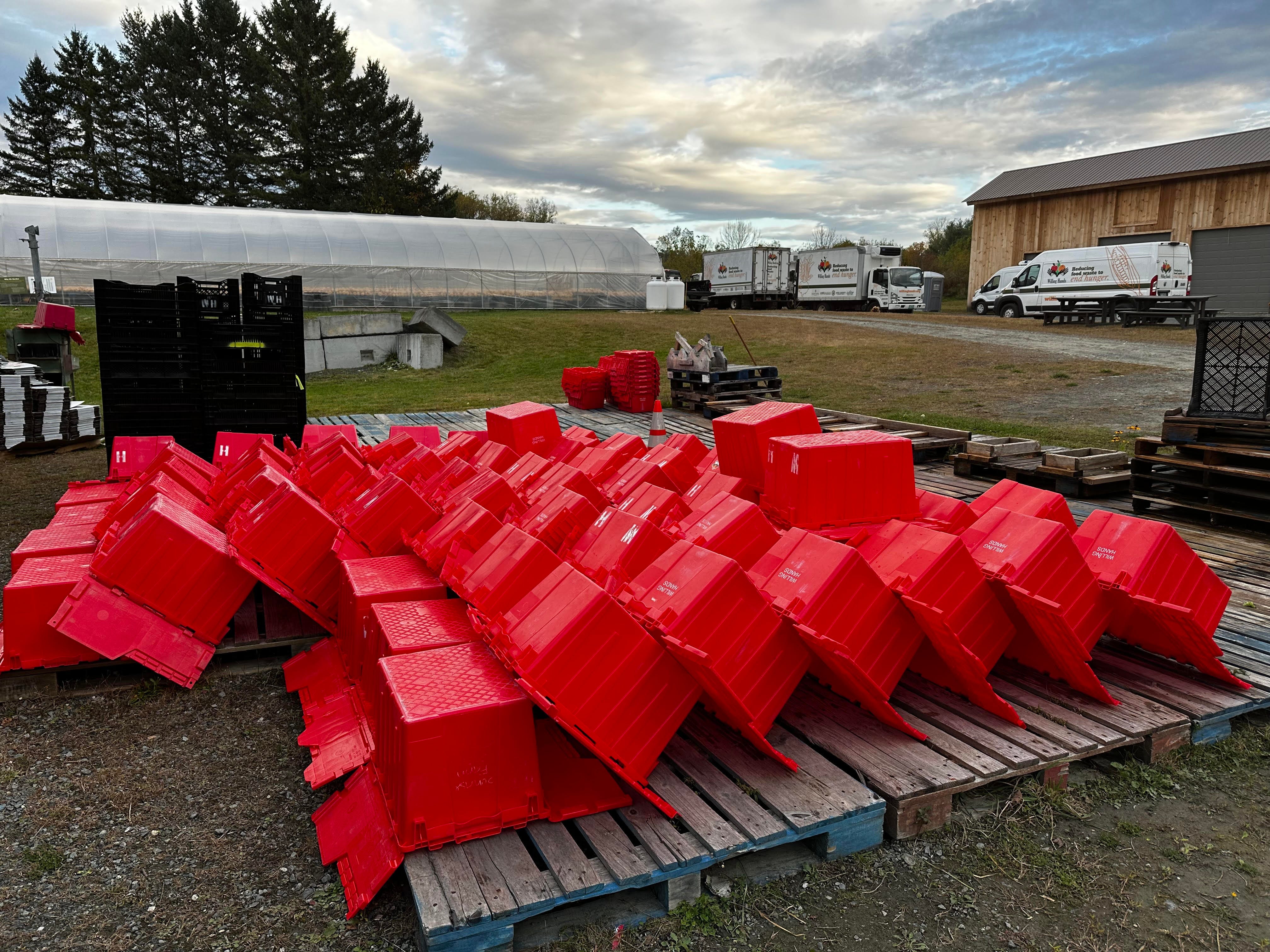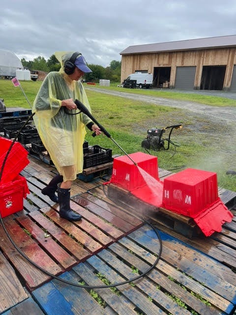 Hundreds of red bins and b;ack crates get washed every week. This is fundamental to making the operation run smoothly - the bins and crates get filled by glean and garden volunteers and our farm partners with fresh produce, then are stored in the warehouse, loaded onto a Willing Hands truck and delivered to 80 service organizations throughout the Upper Valley. When drivers deliver the filled bins and crates to our recipient organizations they also pickup the empty dirty ones and bring them back to be washed in the Water Park.