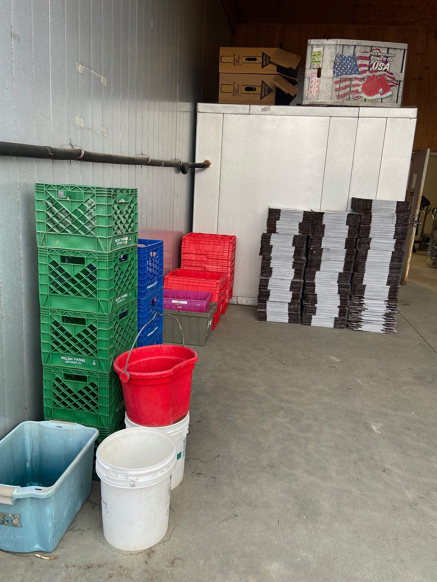 These two photos are courtesy of Carolyn Frye and are of the wash station with info regarding the prep for these containers to be made worthy of the produce they will carry.