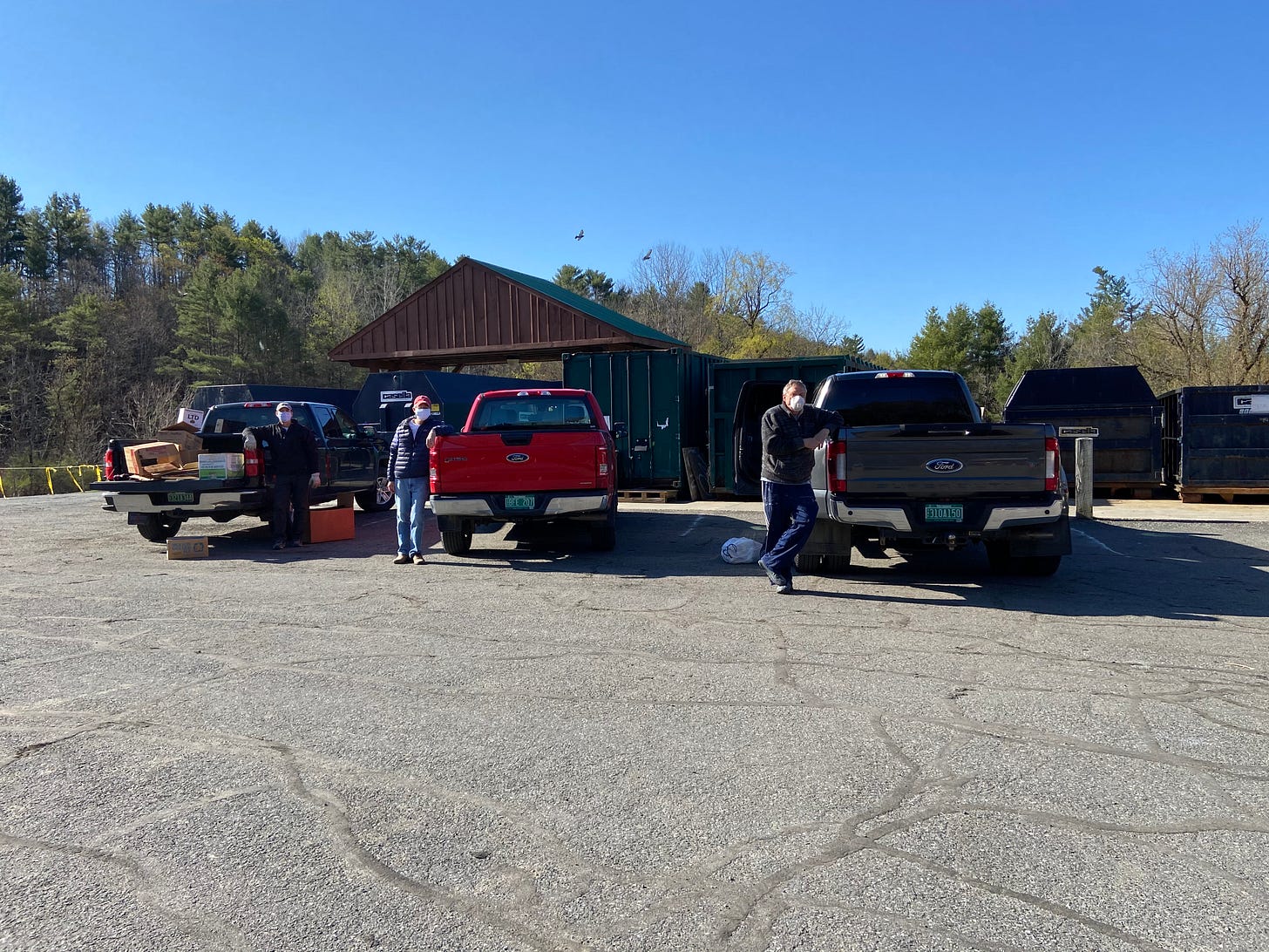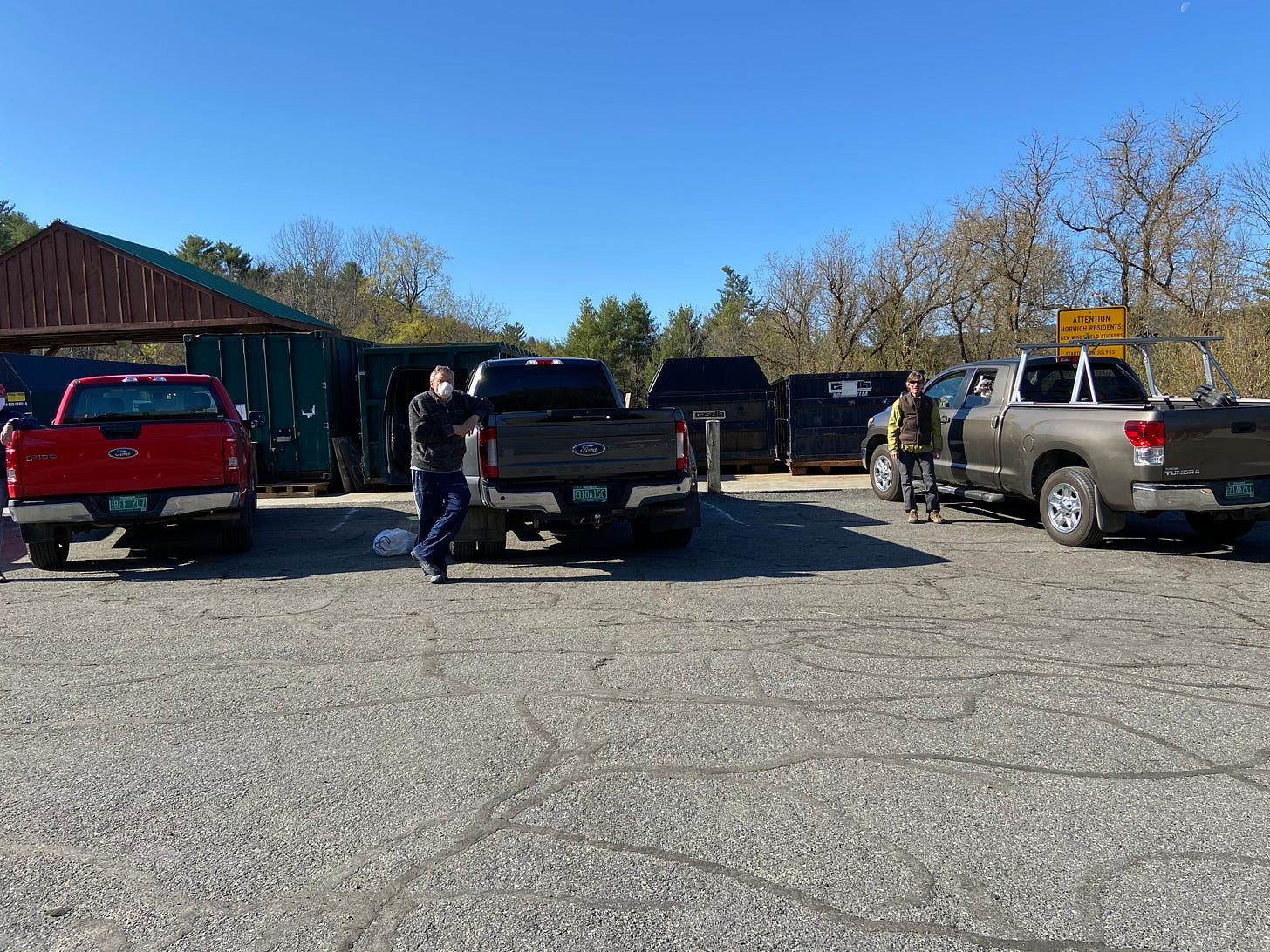 This morning was a morning of sorts at the transfer station., sort of ironic that at the exact same time (8:30 am ) 4 trucks pull into the transfer station and take the 4 available slots (head in parking is the way to go these days as it works the best). It allows you to get the vehicles in and still leave some much needed social distancing room.